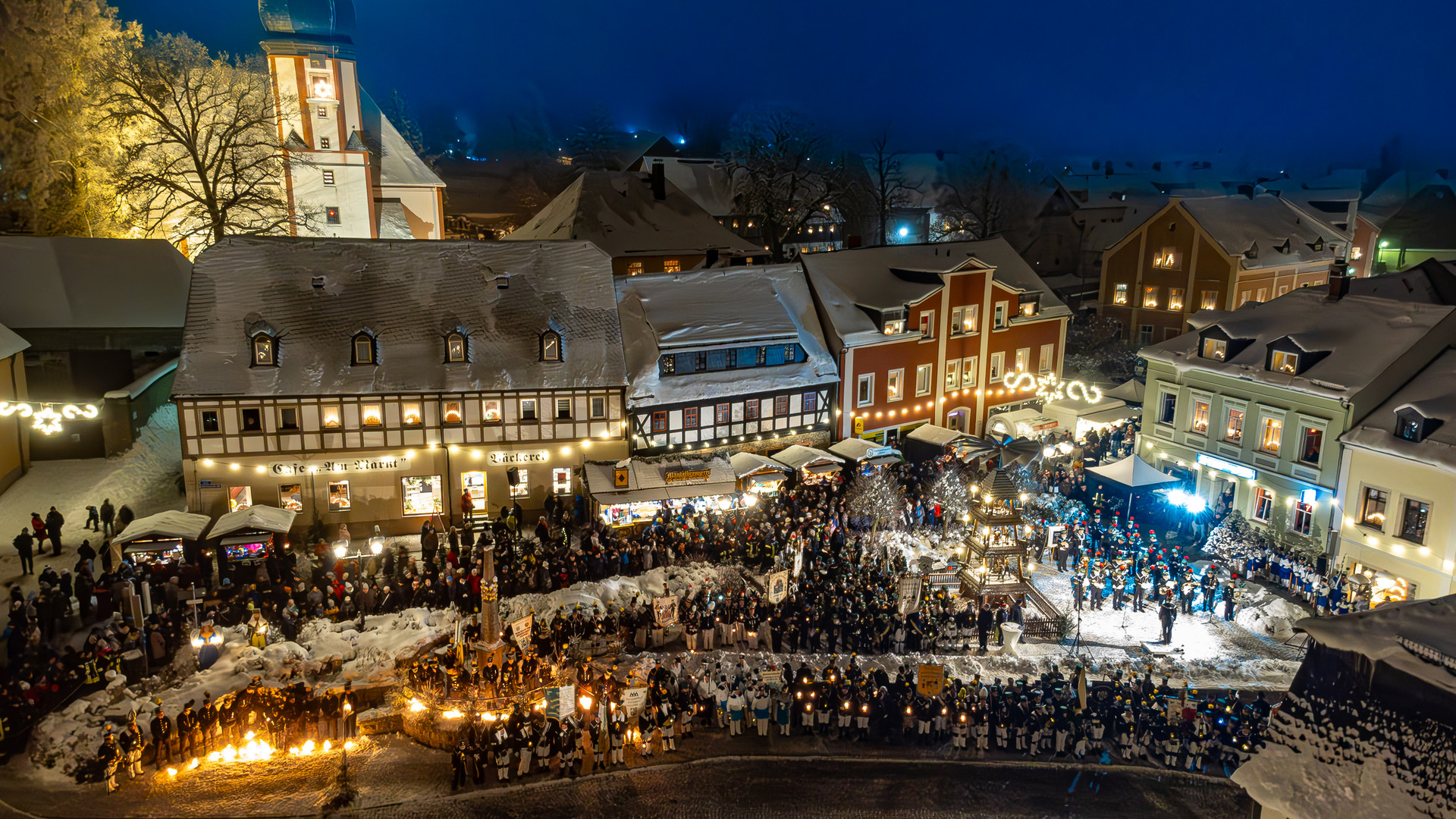 An impressive experience of Ore Mountain tradition: more than 400 traditional costume wearers parade through the centre of Zwönitz in a festive atmosphere, culminating in a festive concert on the market square.