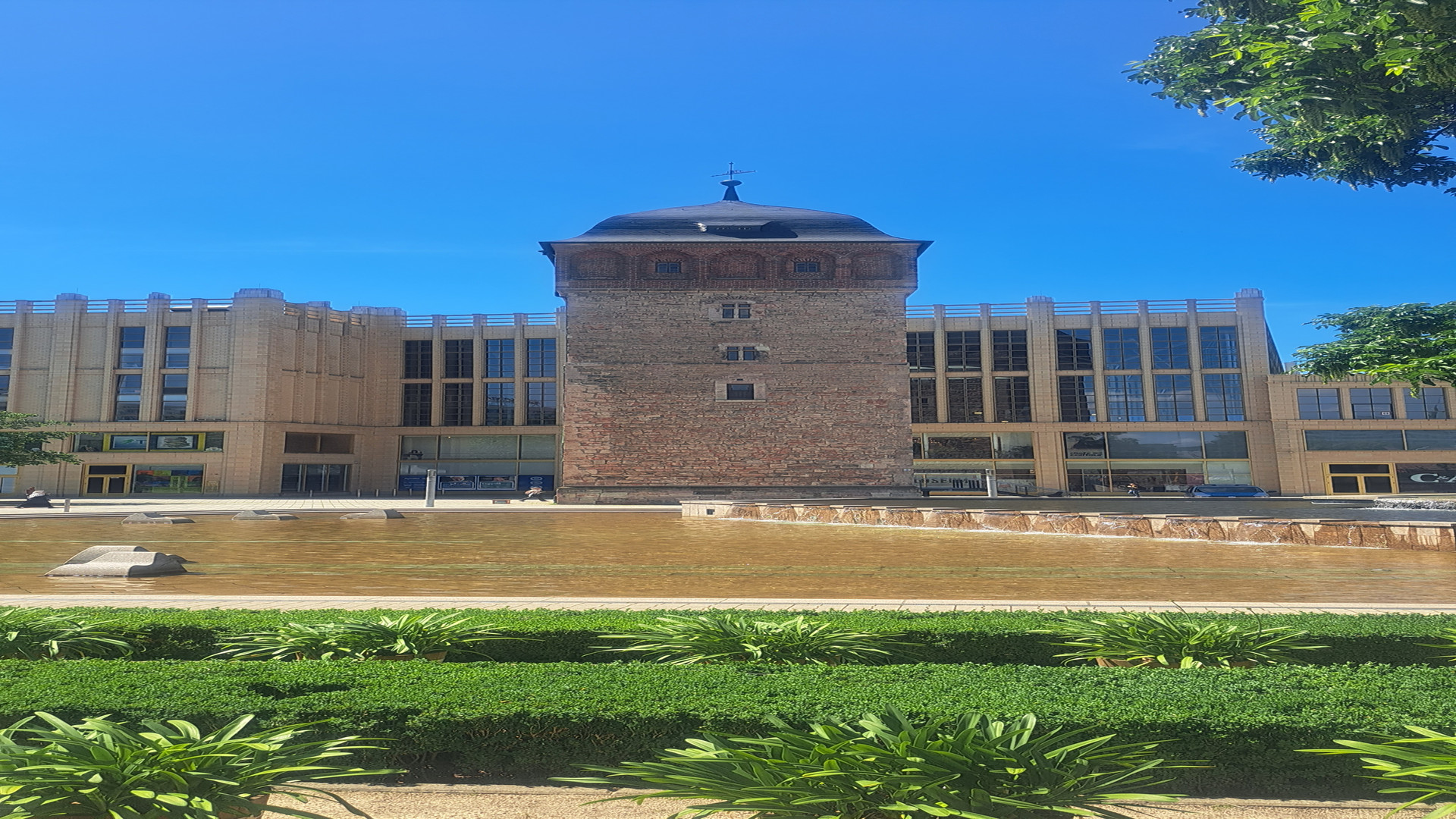 The Red Tower was built at the end of the 12th century and is the town's oldest landmark. The Red Tower is open from 12.00 - 14.00 on the weekends mentioned.