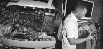 Imaging procedures and their equipment are available to medical staff as an aid to knowledge. The sense of sight and its physical extension, photography, promise a high degree of rationality. At the invitation of Chemnitz Hospital, photographer Felix Bielmeier spent six months developing a work that visualised things not perceived by the public. Medical work and patient care were at the centre of the project - as well as a reflection on aesthetic boundaries and the ambivalent possibilities of the photographic image between information and social practice.