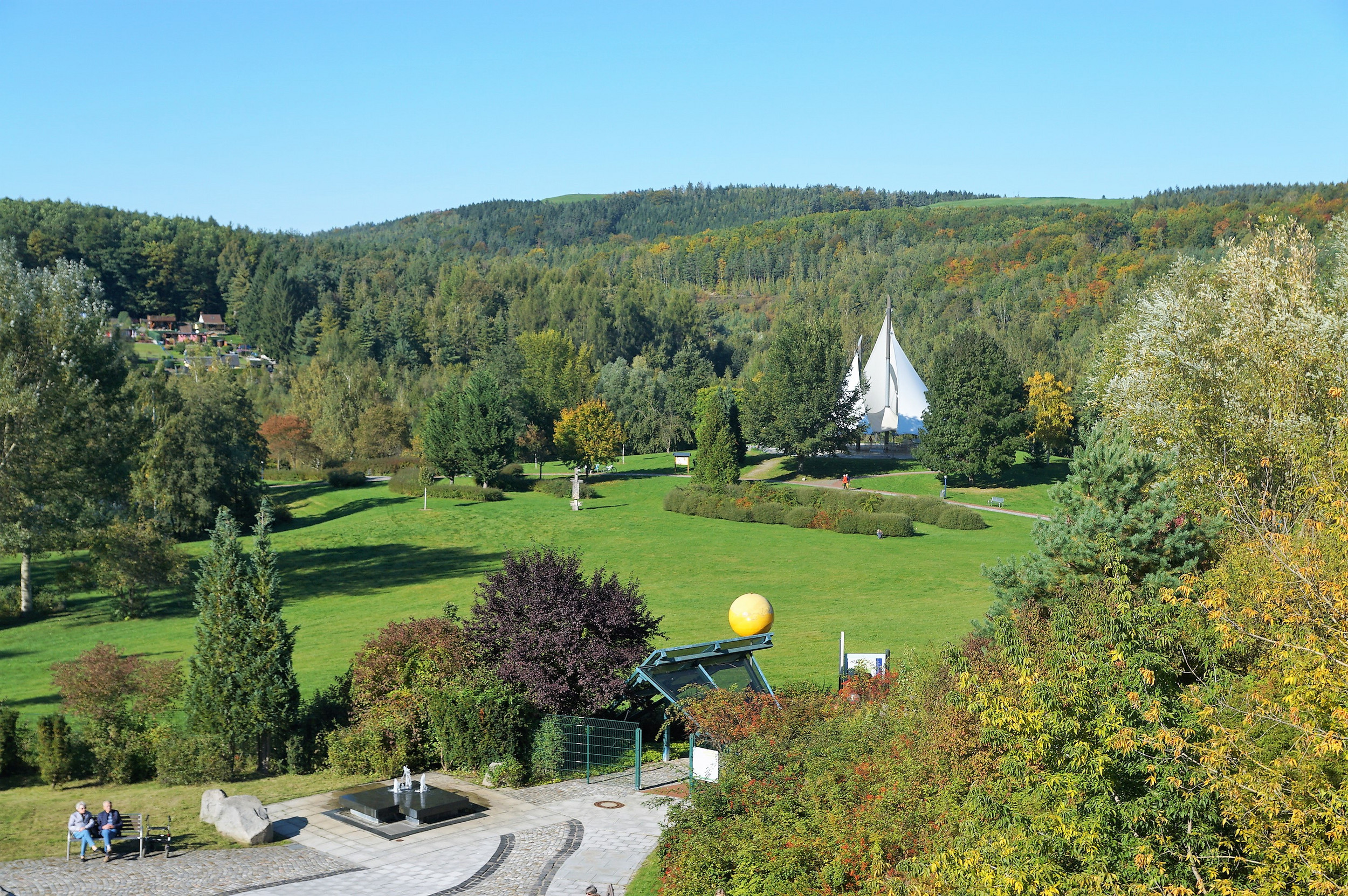 The sculpture Stack by British artist Tony Cragg in the renaturalized spa gardens of Bad Schlema invites visitors to explore the eventful history of the site. The monumental bronze is reminiscent of broken earth in its formal language and refers to the profound traces and potential dangers left here by Soviet-German uranium mining. Cragg was born in Liverpool, UK, in 1949. He now lives in Wuppertal, Germany.