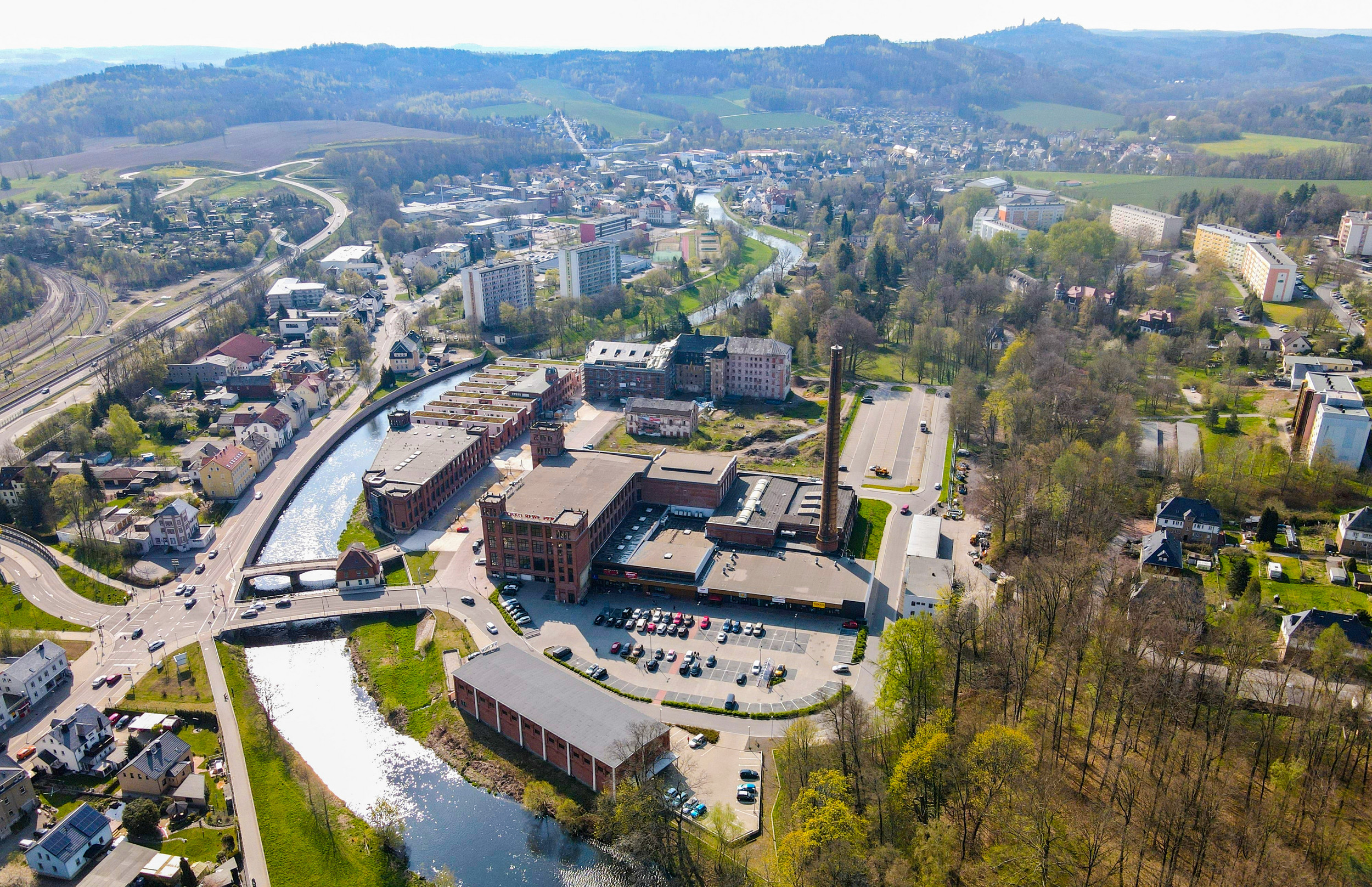 The large district town of Flöha, located in the district of Central Saxony, borders directly on Chemnitz. It lies at the confluence of the Flöha and Zschopau rivers. Founded in the 12th century and first mentioned in 1399, the forest village of Flöha only became a more important settlement with industrialisation in the 19th century: the first cotton mill settled here in 1809 and others followed. With the connection to the Saxon railway network, further industrial companies emerged, for example for coloured paper and tulle or for steam boilers. A town centre in Flöha, which is unique in Germany and was created by revitalising a derelict cotton mill, is a reminder of the heyday of industrialisation. It combines industrial history and modern city life in an unrivalled way. Flöha was declared a town in 1933.