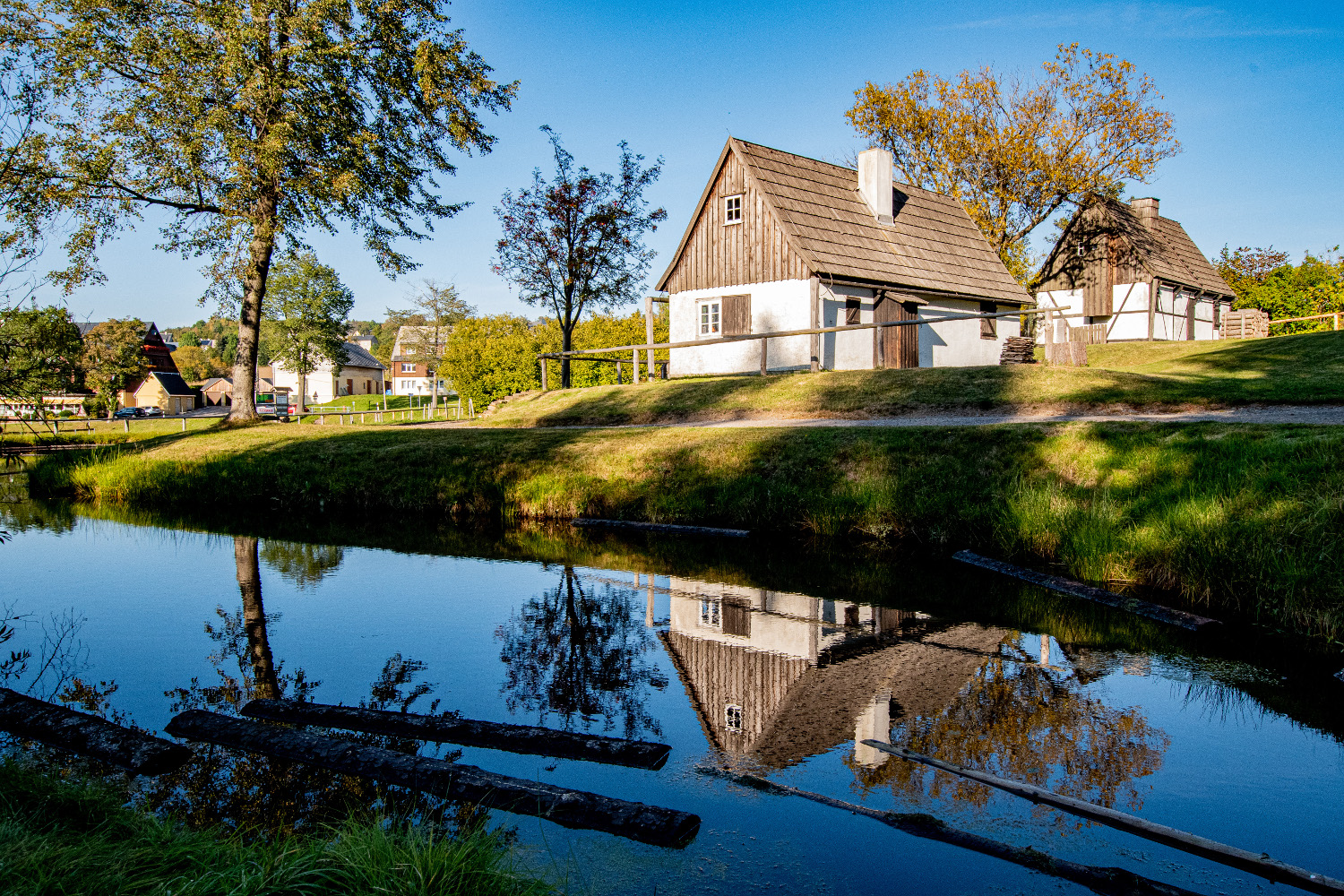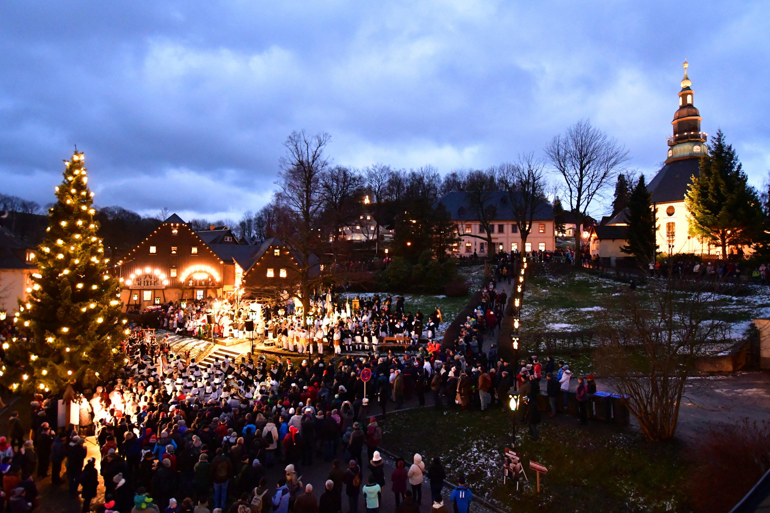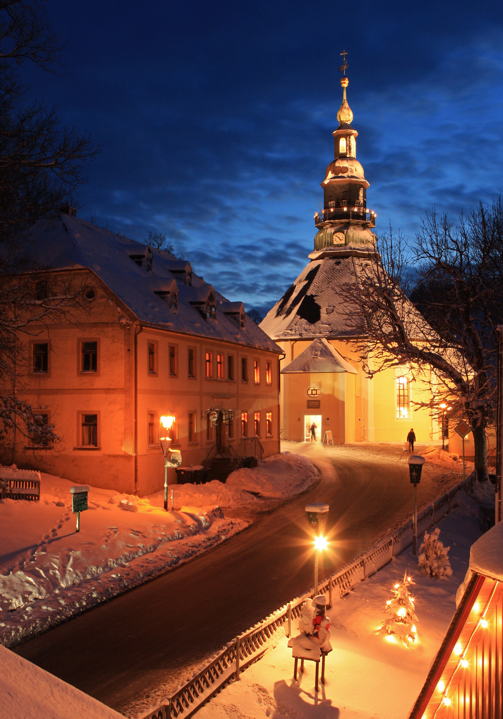 Today, Seiffen is regarded as the centre of Erzgebirge wood art and a toy village. You can watch wooden toys being made in several factories or buy them directly from the producers. The Seiffen church is architecturally attractive with its octagonal floor plan, which is unusual for village churches. In the Erzgebirge Open-Air Museum, you can explore the historic water-powered lathes, which were initially used to power the mining industry and later for wood-turning machines. The model railway exhibition at Erlebniswelt Seiffen also hosts workshops and seminars. And from the Seiffen and Neuhausen ski areas, cross-country ski trails lead all the way to the Czech Ore Mountains.