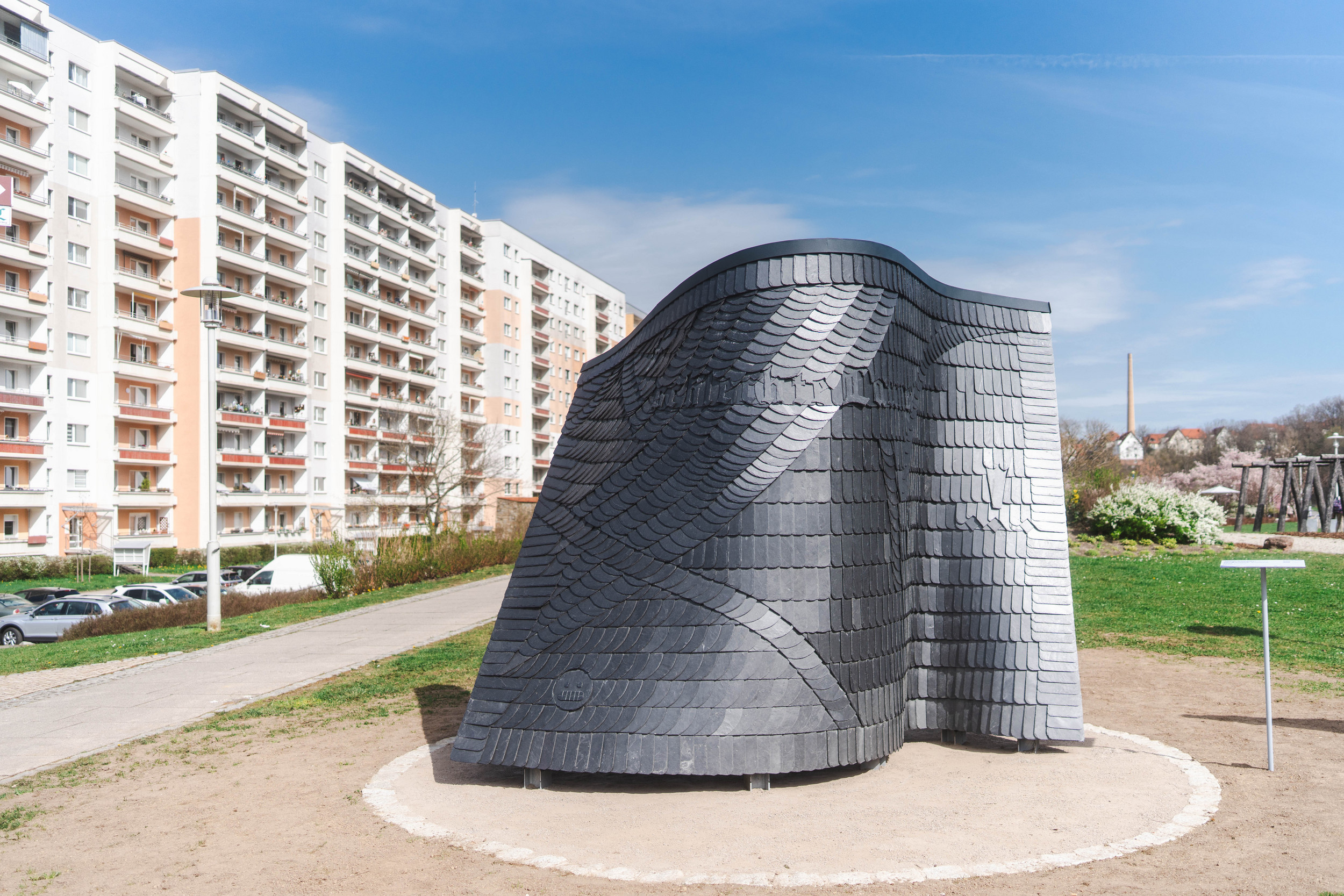 The artwork dingenunner, dingenauf by Jana Gunstheimer was inaugurated on 13 April 2025 as part of the opening weekend of the PURPLE PATH in Zwickau. The artwork is currently not accessible due to cleaning work.
