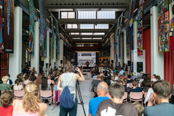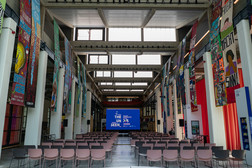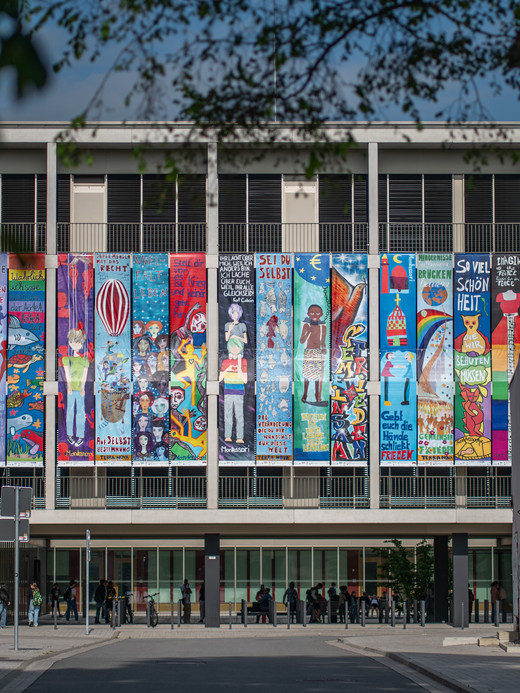 Young people from the region in and around Chemnitz came together to create the final banners needed to set a world record. They worked in public workshops, and you could even watch them. Over 300 banners, each seven metres long, had been created since 2011. They were exhibited in two sports halls and could also be seen temporarily at various locations in the city. Anyone who wanted to could also listen to the young people when they performed together with their choir in St James' Church.