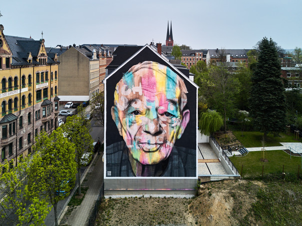 Against forgetting: Falk "Akut" Lehmann has created a very special mural: The portrait of Holocaust survivor Justin Sonder (1925-2020) adorns the façade of the house on Glockenstraße. "I wanted to survive" is written in grey letters, a sentence that Justin Sonder coined when looking back on his time in the Auschwitz concentration camp. It is Falk Lehmann's third picture of Holocaust survivors, which are known under the title "Against Forgetting". The Thuringian-born artist often focuses on social and societal issues in his large-scale works.