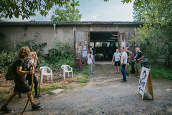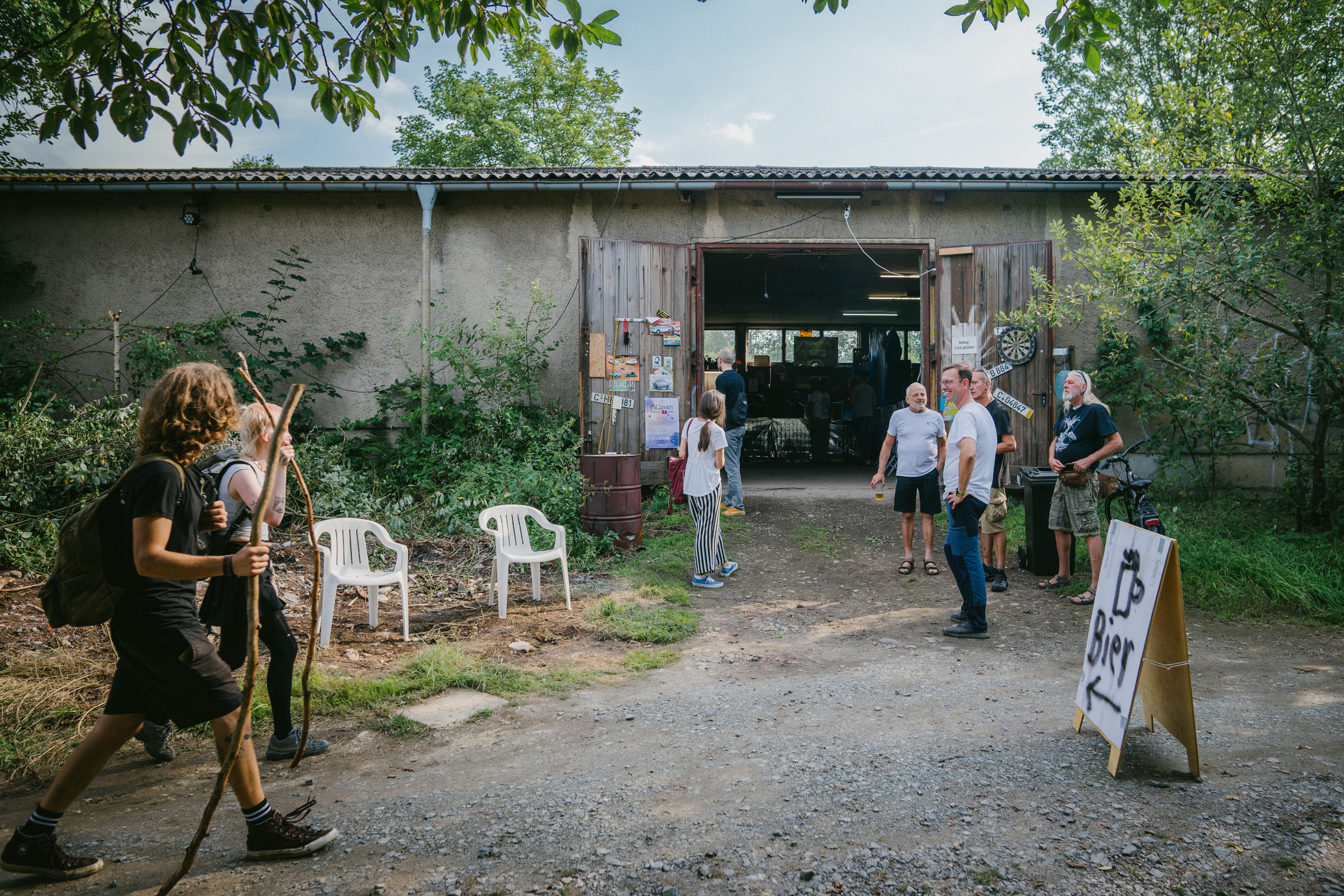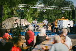 Wohnzimmerkonzerte, aber Open Air. Nicht der perfekte Sound, aber die perfekte Atmosphäre: klein, intim, besonders. So waren die Garagenhofkonzerte. Das erste fand im Sommer 2023 statt, als eine Band vor dem offenen Tor einer leeren Garage spielte. Danach kam die Lust bei vielen Garagennutzer:innen auf, im Do-it-yourself-Stil auch ihren Hof zu bespielen – im Wohnviertel, am Stadtrand oder direkt in der Kulturhauptstadtregion. Jeder, der mochte, kam, brachte Stühle, packte an und erfreute sich an Musik und Miteinander im ganz besonderen Setting.