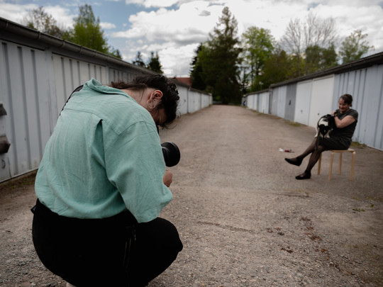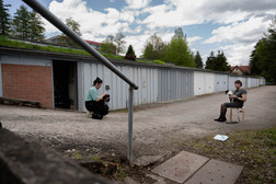 Die Mitglieder einer Garagengemeinschaft treffen sich in der Regel einmal im Jahr, um Aktuelles zu besprechen z.B. Instandhaltung, Arbeitseinsätze oder Verwaltungsfragen. Für ihre Ausstellung brachte Maria Sturm Menschen aus dutzenden Garagenhöfen außerordentlich zusammen. Im Jahr 2024 hatte die aus Rumänien stammende Fotografin 164 Menschen mit ihrer analogen Mittelformatkamera porträtiert, während sie durch die Chemnitzer Garagenlandschaft streifte.