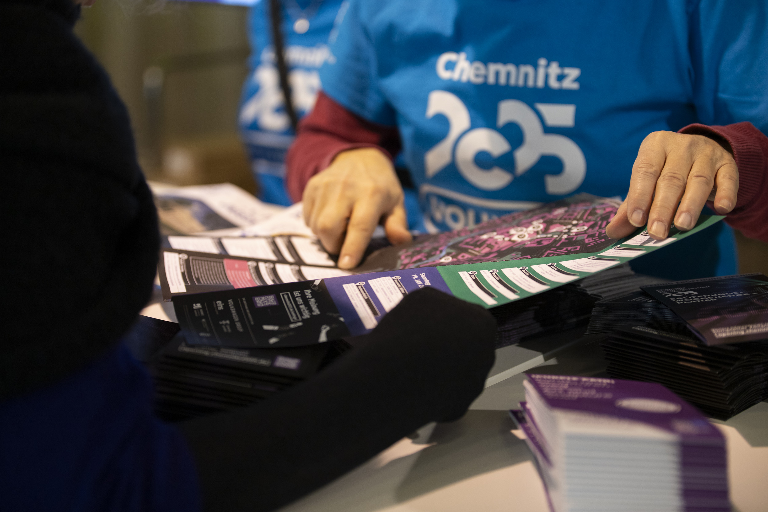 Einige Volunteers berichten in der Freiwilligenredaktion von ihren Einsätzen und Erlebnissen. In ihren Artikeln gewähren sie Blicke hinter die Kulissen: Sie erzählen von Begegnungen während ihres Einsatzes auf dem Chemnitzer Weihnachtsmarkt, wie sie für Chemnitz 2025 in Sprachtandems Englisch lernen oder von ihren Erlebnissen in den ersten Tagen nach der Eröffnung. Die Beiträge sind auf chemnitz2025.de veröffentlicht.