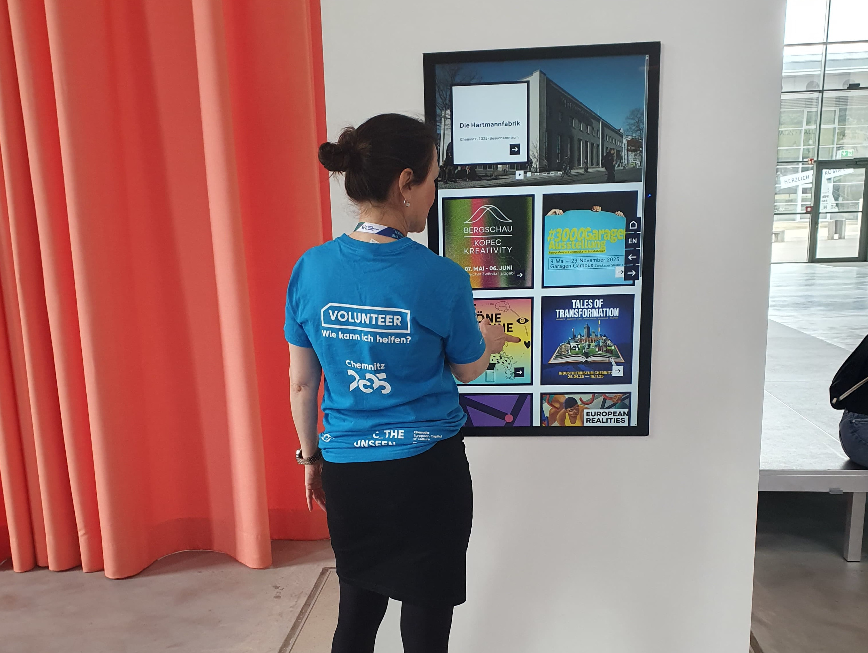 Nicht nur die vielfältigen Flyer und Broschüren fanden großen Anklang, sondern auch die Touchscreens, auf denen ich den Gästen den Veranstaltungskalender auf der Homepage von Chemnitz 2025 zeigte, stießen auf viel Begeisterung.