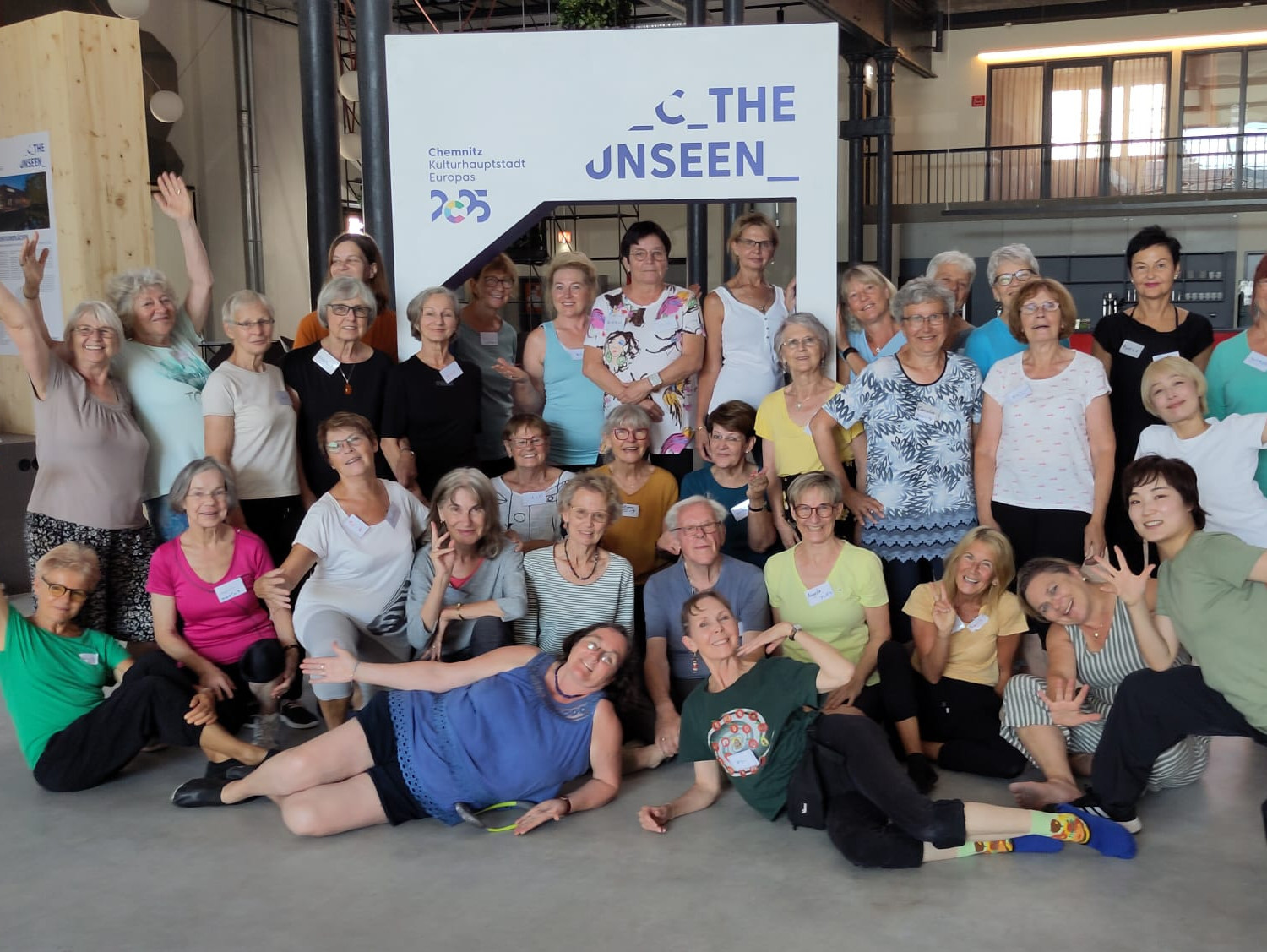 Chemnitz, 5. September 2024, morgens 9 Uhr, Hartmannfabrik. Geduldig warten tanzbegeisterte Frauen Ü60 auf Einlass zum zweiten Intensivworkshop des Projekts „Tanzende Nachbarn“. Ca. 40 Frauen und ein Mann hatten sich angemeldet. Insgesamt 90 Trainingsstunden, verteilt auf 15 Tage, liegen bis heute bereits hinter ihnen. Trainiert wird wöchentlich in drei Gruppen. Die Räumlichkeiten stellen das Opernhaus Chemnitz, der Kraftwerk e.V. und die Volkssolidarität, Bereich Clausstraße, zur Verfügung. Frau Terry Pedersen Pfeiffer, eine erfahrene Tanzpädagogin, betreut alle drei Gruppen bis – so der Plan – zum Auftritt der Hobbytänzer und -tänzerinnen bei der Eröffnungsveranstaltung des Kulturhauptstadtjahres am 18. Januar 2025. Unterstützt wird das Projekt von drei japanischen Tanzpädagoginnen.