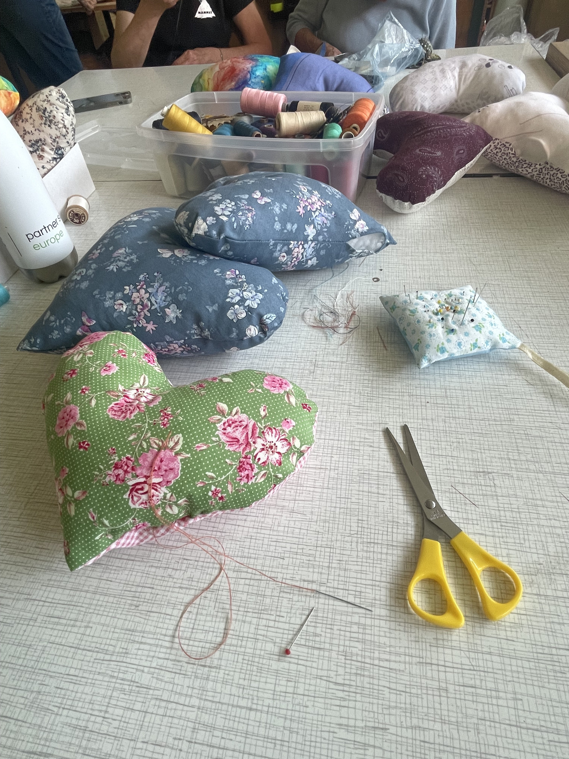 Um das Projekt umsetzen zu können, benötigt es viele fleißige Hände, die den Stoff zu Herzformen zusammennähen, dann mit Füllwatte bestücken und zum Schluss noch eine letzte schließende Naht nähen. Das Projekt wird in Kooperation mit der Volkssolidarität Chemnitz, den erfahrenen Frauen des Nähzirkels in der Montessori-Schule sowie dem Freiwilligenprojekt der Kulturhauptstadt und damit uns Freiwilligen umgesetzt.