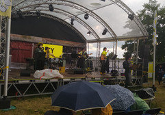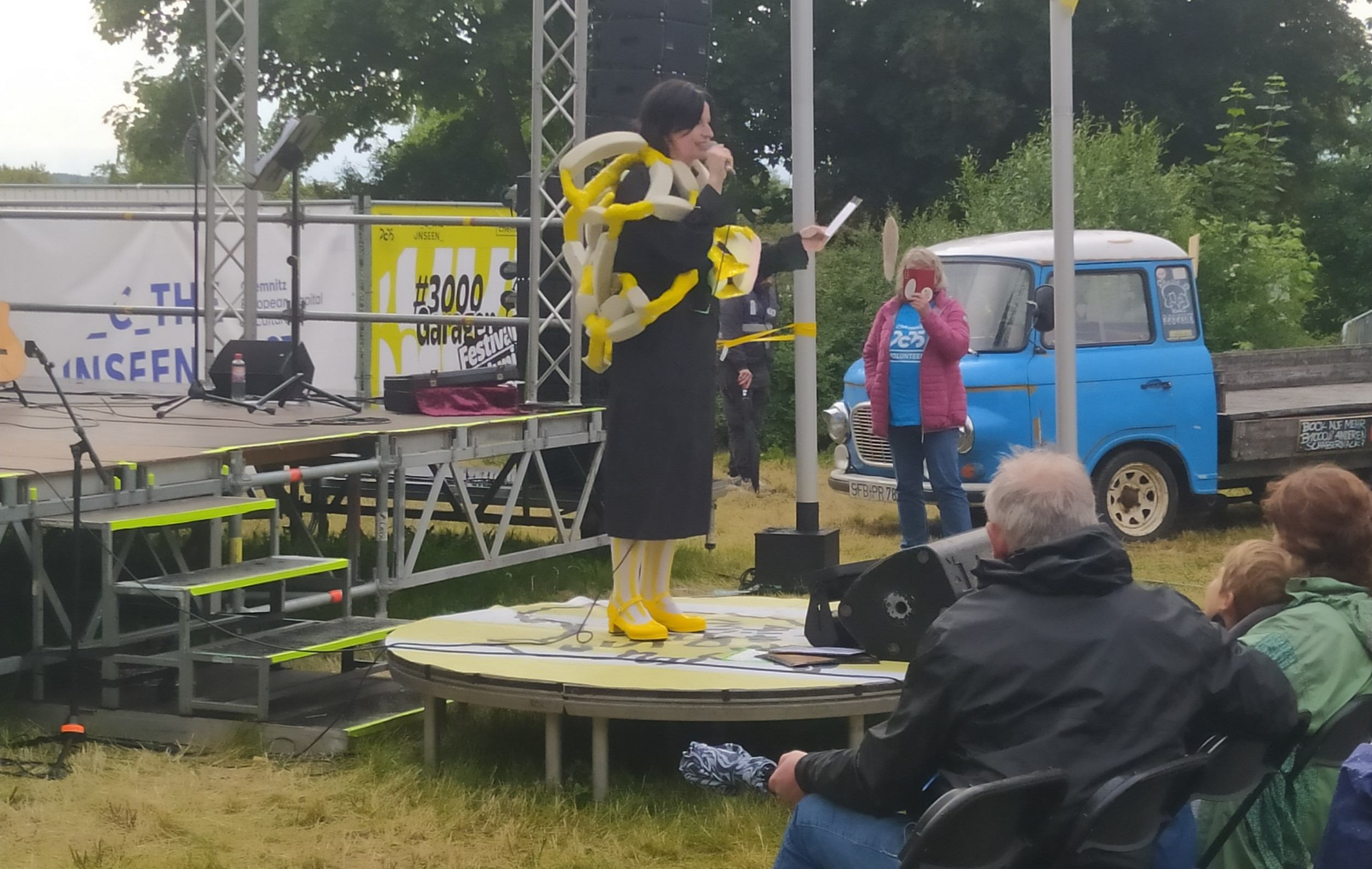 Auch auf der Bühne drehte sich alles um Garagen. Tanja Krone und ihre Band waren mein persönliches Highlight. Das Programm hieß „SONGS OF (IN)SECURITY – ERSTE SICHERHEITSKONFERENZ DES EHEMALIGEN OSTENS.“ Hintergrund und Ausgangspunkt dieses Projekts ist der Gedanke, dass Garagen Orte der Sicherheit waren und sind. Die Band hatte persönliche Geschichten und Meinungen von Garagenbesitzern gesammelt. Das Material bildete die Grundlage für Songs, Musik sowie Wortbeiträge. Die große Frage dieses Projekts war: „Wie sicher fühlen sich die Chemnitzer in ihrer Stadt?“ Den sächsischen Dialekt nicht leugnend haben die Künstlerinnen ein Musiktheater geschaffen, das hoffentlich noch oft zur Aufführung kommen wird.
