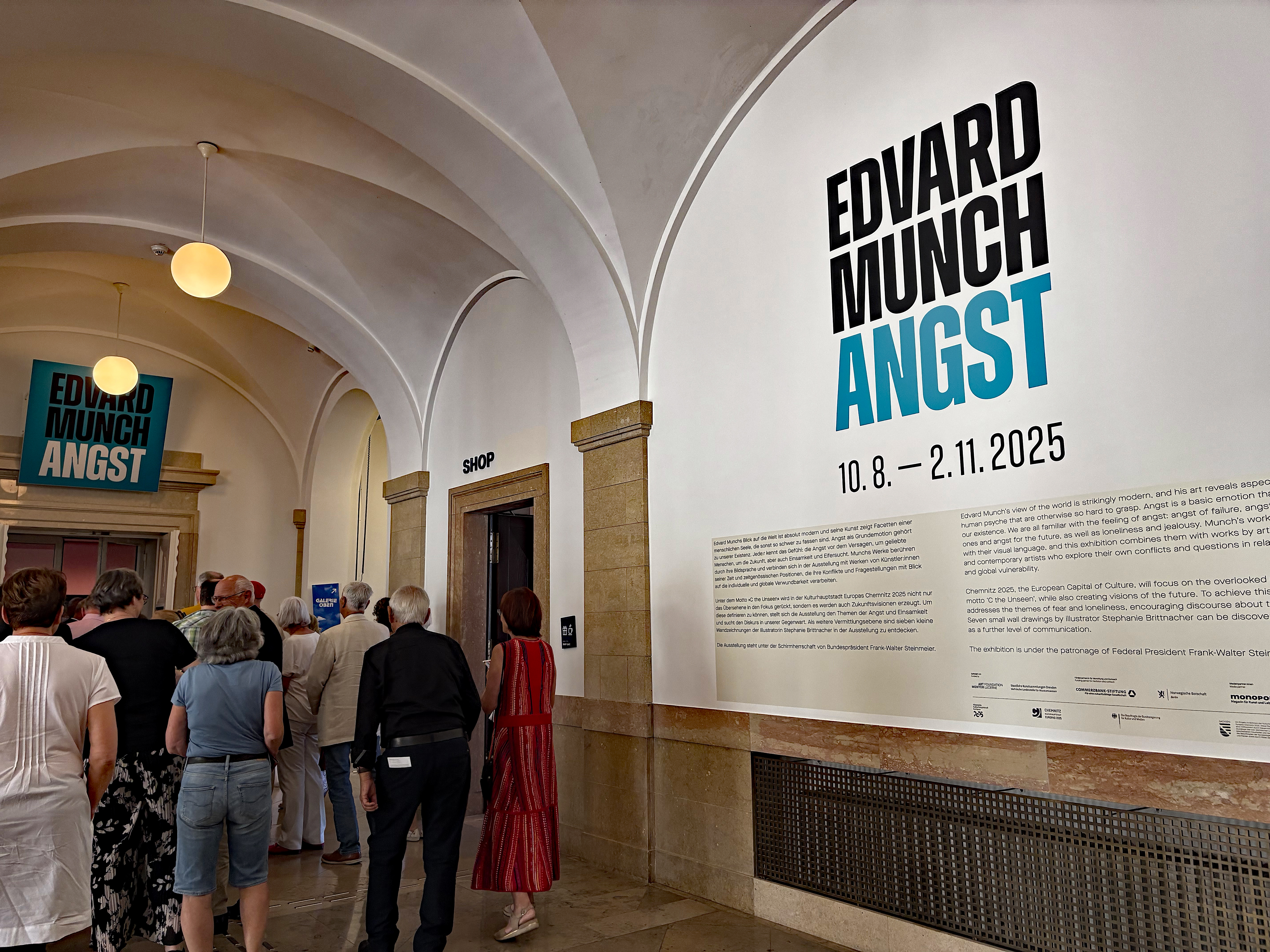 Die Botschafterin des Königreiches Norwegen in Deutschland, Frau Laila Strenseng, Oberbürgermeister Sven Schulze sowie Sachsens Ministerpräsident Michael Kretschmer würdigten die hochkarätige Ausstellung als eine der Höhepunkte der europäischen Kulturhauptstadt Chemnitz 2025. Nach dem Festakt begleiteten wir die Besucher zur Ausstellung in die Kunstsammlungen, wo alle herzlich eingeladen waren, sich die Werke von Munch sowie von vielen anderen Künstlern wie Karl Schmidt-Rottluff, Georg Baselitz, Neo Rauch und Andy Warhol anzusehen.
