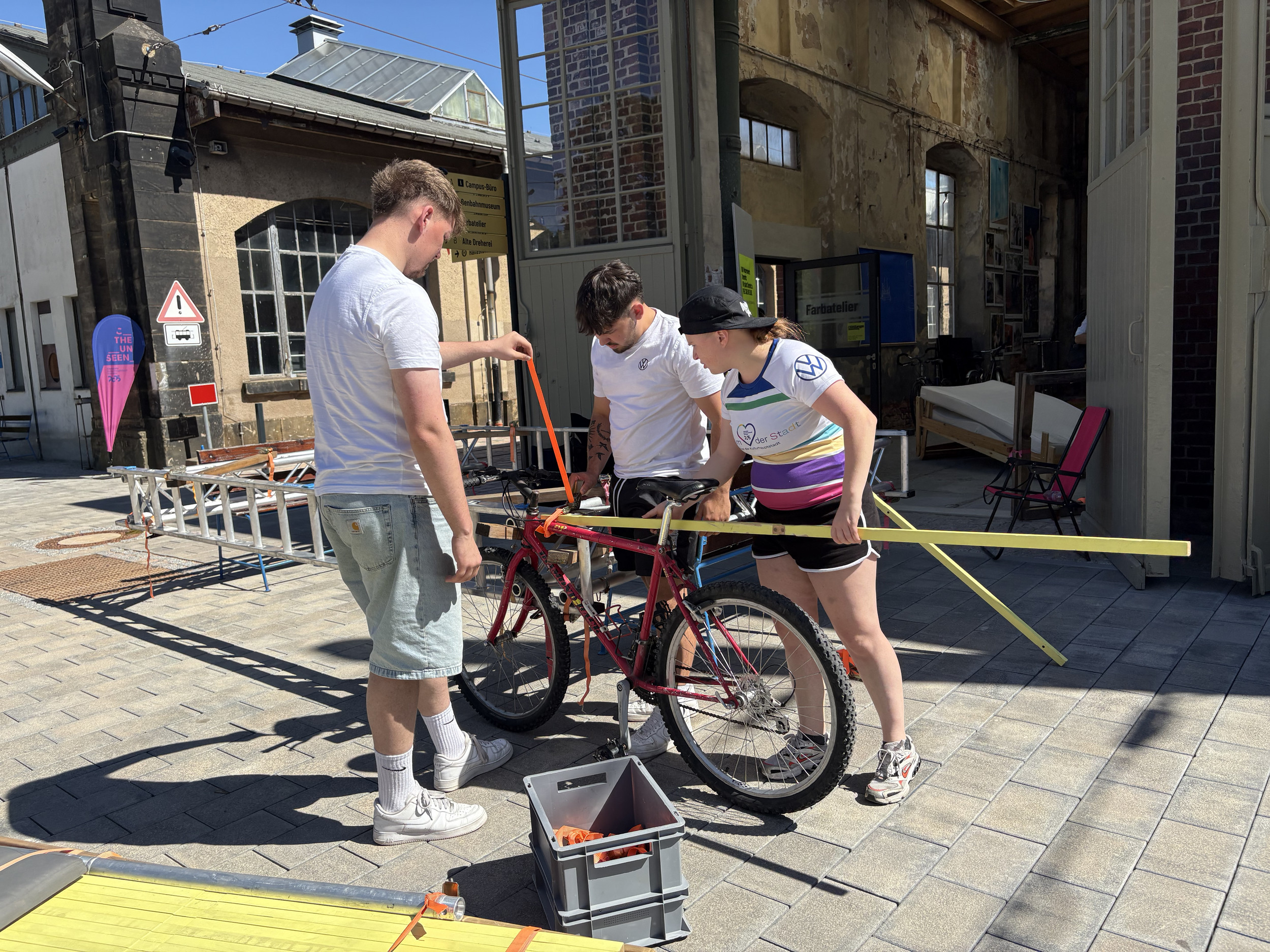 Gemeinsam mit Auszubildenden des VW-Motorenwerks Chemnitz wurde ein experimentelles Kunstprojekt ins Leben gerufen. Ziel war es, humorvolle und nachhaltige Fahrgestelle zu gestalten – unter ausschließlicher Verwendung vorhandener Materialien wie Leitern, Spanngurten, Gerüstteilen und Holzbalken. Der Fokus auf Wiederverwendung machte nicht nur ökologisches Denken greifbar, sondern eröffnete auch neue ästhetische Spielräume.