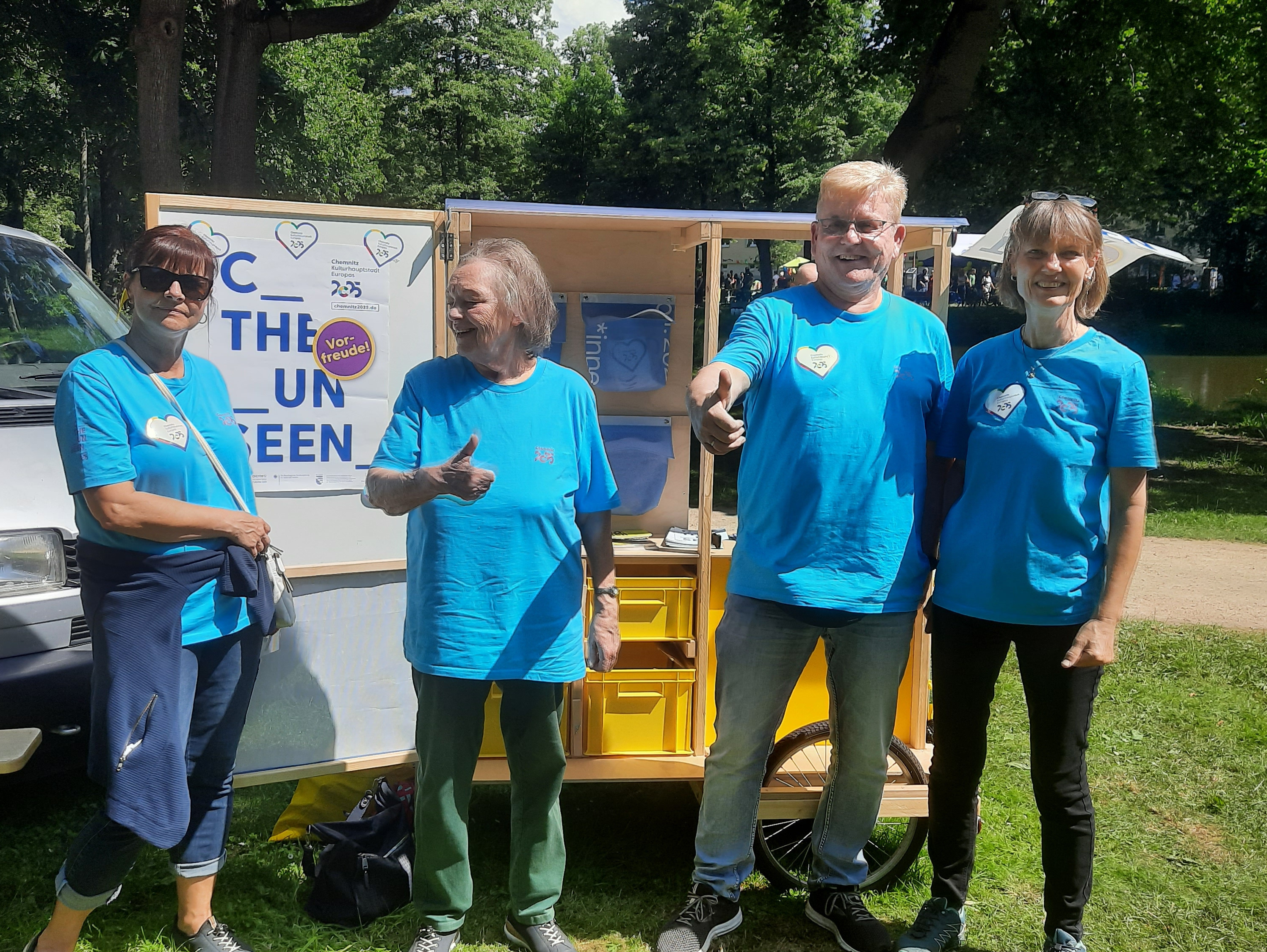 Wir hatten ein schönes kleines „Mobil“, welches mit Werbematerial für die Kulturhauptstadt 2025 ausgestattet war. Die vorbeilaufenden Personen hatten Zeit und waren gern bereit, mit uns über ihre Meinung und ihre bisherigen Erfahrungen zur Kulturhauptstadt zu sprechen.