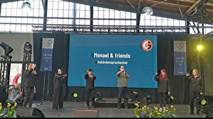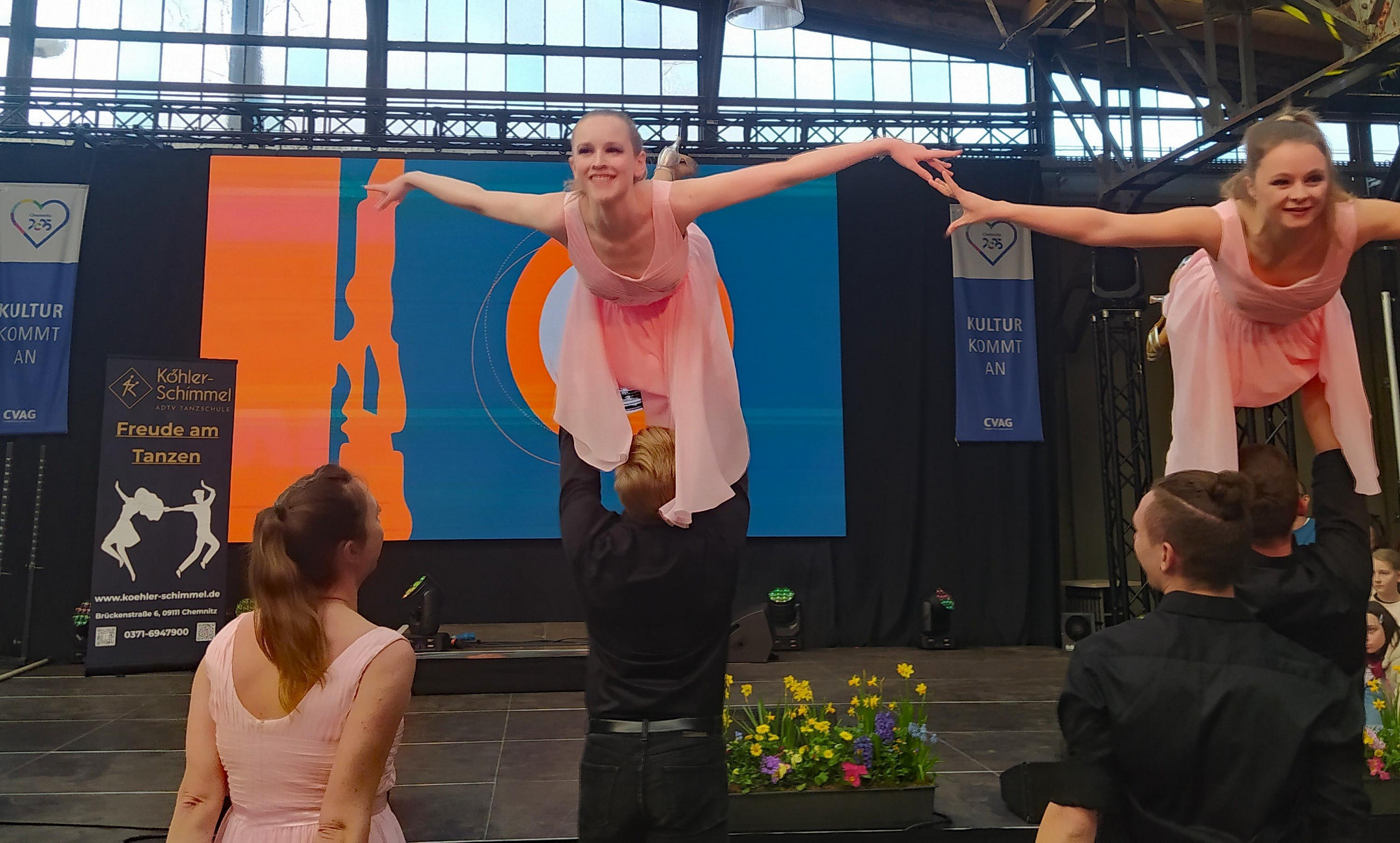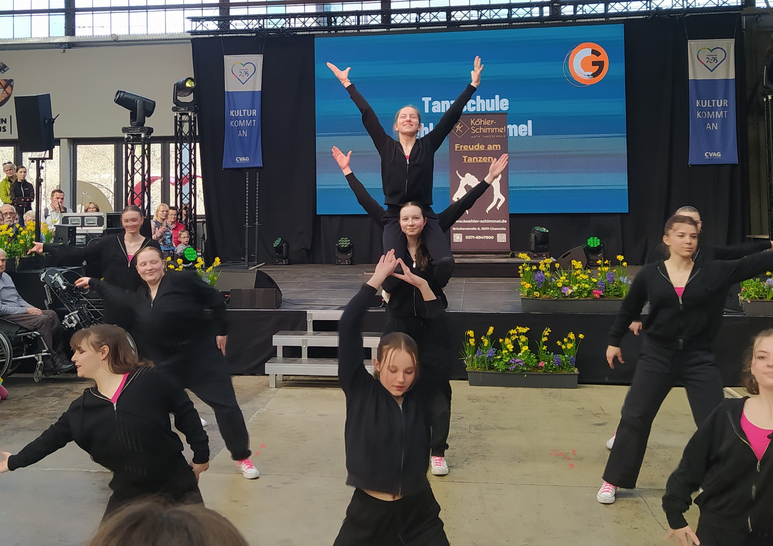 Den Gebärdenchor Monael & Friends wollte ich auf keinen Fall verpassen. Hat funktioniert. Den Song „Seite an Seite“ von Christina Stürmer zu hören und den Chor zeitgleich gebärden zu sehen, war beeindruckend. Ihren wohlverdienten Applaus erhielten die gehörlosen Laienkünstler nicht wie gewohnt durch Händeklatschen, sondern durch erhobene sich drehende Hände. Auf diese Besonderheit hatte die Moderatorin vor dem Auftritt der Formation hingewiesen. Musik, Sport und Tanz bestimmten auch an diesem Tag das Programm. Dirty Dancing, Udo Lindenberg, sogar ein Chemnitztanz kamen zu Ehren. Die über Generationen hinweg bekannte Tanzschule Köhler-Schimmel begeisterte mit ihren Choreografien das Publikum. Apropos Chemnitztanz und Chemnitzsong. Wenn mich meine Wahrnehmung nicht täuscht, gibt es mehrere davon. Auch zwei Podcasts habe ich im Netz entdeckt. Könnte man mal Ordnung reinbringen, DEN Chemnitzsong küren und vertanzen lassen. Sorry – ist nur so eine Idee. Nochmal sorry. Vielleicht habe ich ja was verpasst?