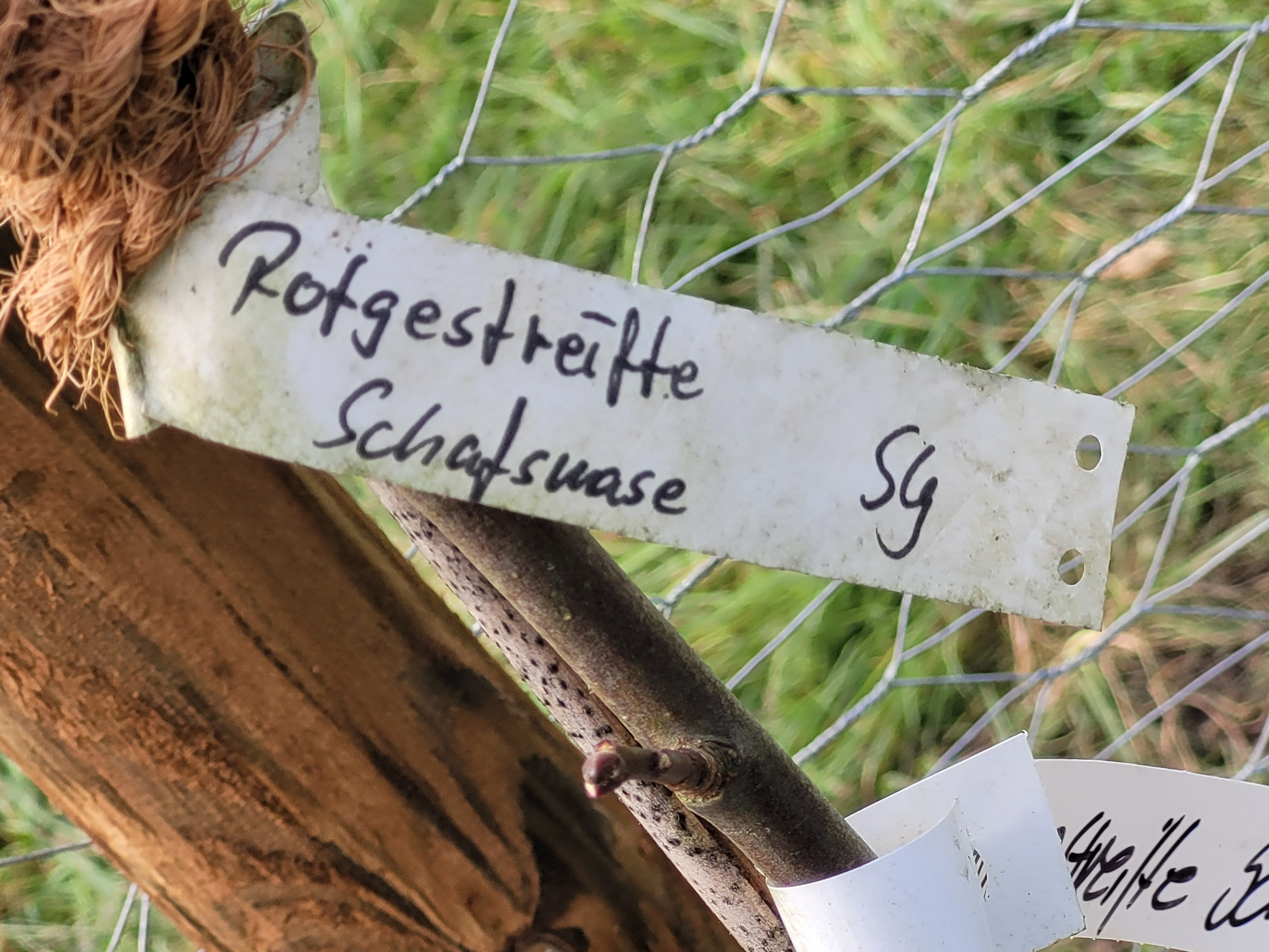 In kleinen Gruppen begannen sie, Pflanzlöcher auszuheben – sorgfältig und tief genug, damit die jungen Bäume später festen Halt finden. Anschließend wurde am Grund des Loches das schützende Wühlmausnetz ausgelegt, bevor der Baum behutsam in die Erde gesetzt wurde. Gemeinsam schütteten sie das Pflanzloch wieder zu und achteten dabei darauf, dass die Veredelungsstelle über dem Boden blieb. Dann wurde das Wühlmausnetz geschlossen, die Erde sorgfältig verdichtet und abschließend ein Gießring geformt.