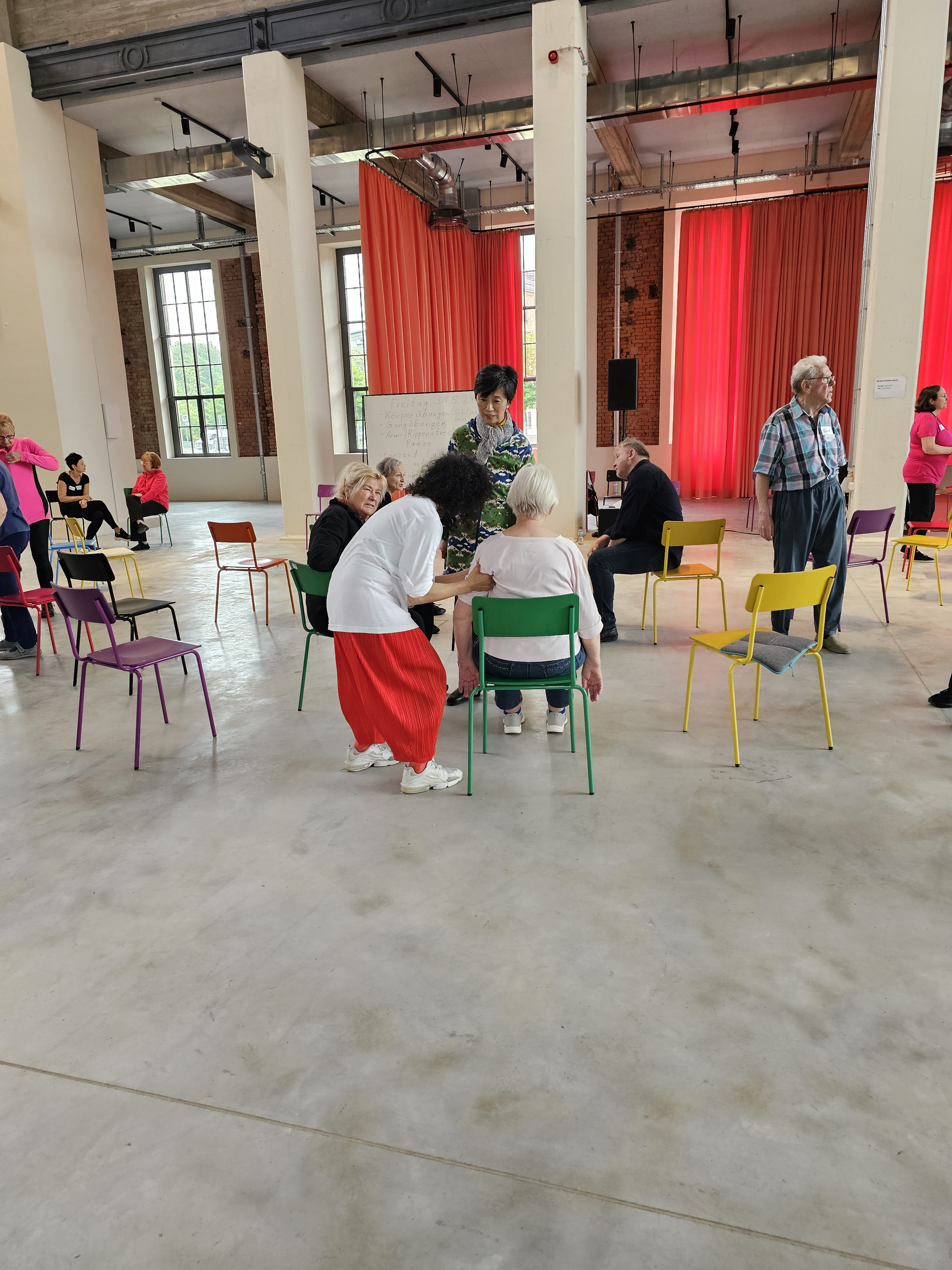 Über eine Zeitungsannonce und zwei Freundinnen erfuhr ich vom Kulturhauptstadtprojekt „Tanzende Nachbarn“. Zuerst war ich skeptisch - weil keinerlei Vorerfahrungen im Tanzen – und dann noch so ein komischer Name! Teilnehmende Bekannte versicherten mir nach ihren ersten Besuchen aber, dass keine Vorkenntnisse erforderlich sind. Auch in der Werbung war es so angegeben. Das Projekt wird vom EU-Japanfest-Komitee jedes Jahr in einer Kulturhauptstadt durch japanische KünstlerInnen durchgeführt. Den Chemnitzer Vorbereitenden gelang es, die Leiterin der Silberdancer Yoko Ando Matsumoto aus Yokohama hierher zu locken. In dem Land mit der ältesten Bevölkerung hat sich die Ausübung von Tanz für diese Generation sehr bewährt. Das überzeugte mich!