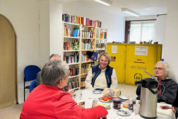 Im Laufe der Zeit hat sich die Ausstellung weiterentwickelt. Ein neuer Begegnungsraum mit Sitzgelegenheiten, kostenlosem Kaffee, einem Büchertauschregal und Filmen über die alte Baumwollspinnerei lädt zum Verweilen ein und macht die Ausstellung noch attraktiver.