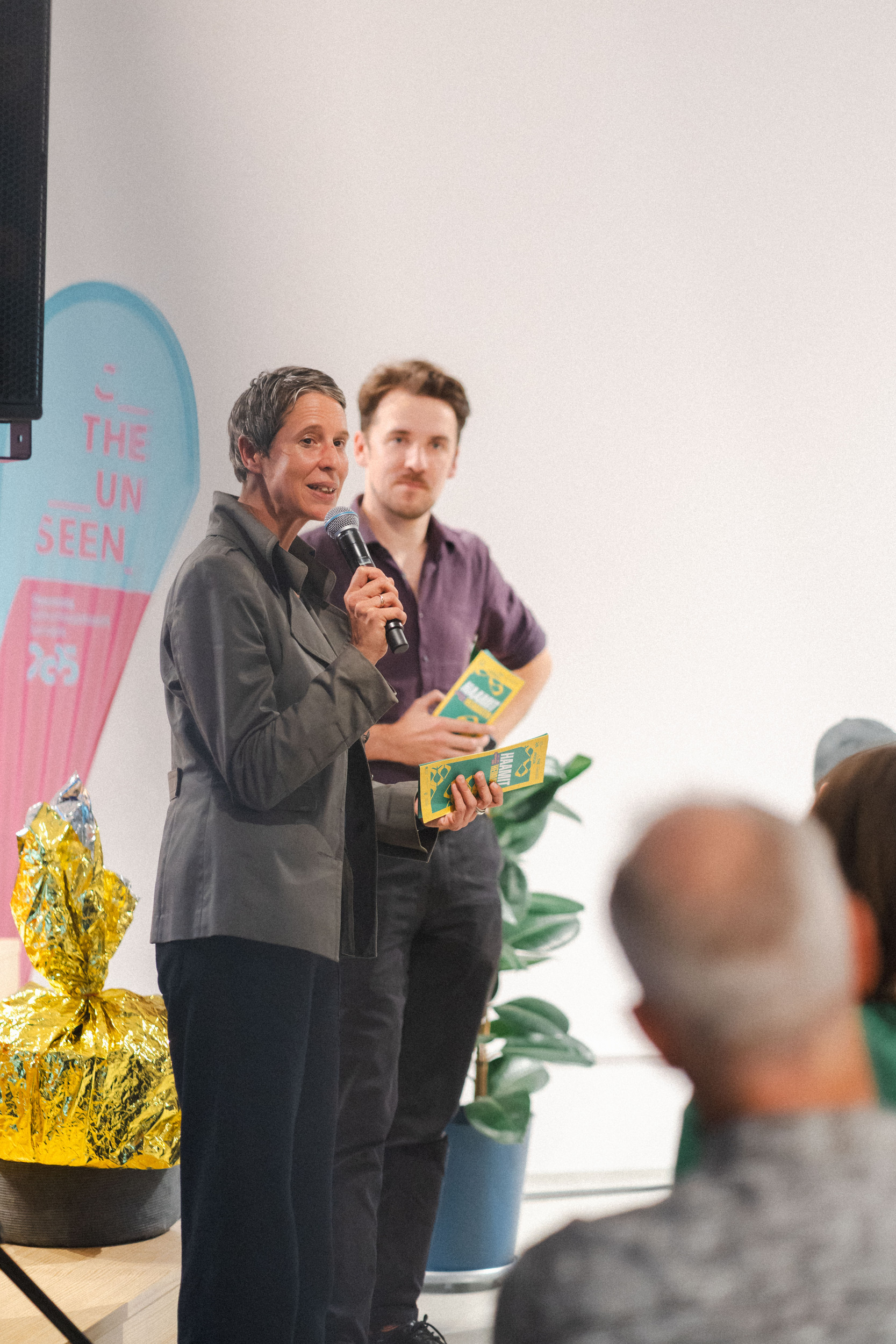 Am Mittwoch, 17.09.2025, wurde das Festival haamit heimaten mit der Paneldiskussion "haamit - Heimat - heimaten": Vielstimmige Perspektiven auf und aus dem Osten Deutschlands eröffnet. Zentrale Fragen der Veranstaltung waren: Was bedeutet Heimat heute – und wer darf dazugehören? Und wie kann der Osten Deutschlands endlich vielfältiger erzählt werden – jenseits des Bildes eines ausschließlich „weißen“ Ostens? Auf dem Panel sprachen die Filmemacherin Claudia Tuyết Scheffel und Lydia Lierke vom Offener Prozess – Dokumentationszentrum zum NSU-Komplex. Moderiert wurde der Abend vom Autor und Publizist Max Czollek, der ebenfalls Mitinitiator des dezentralen heimaten Festivals ist.