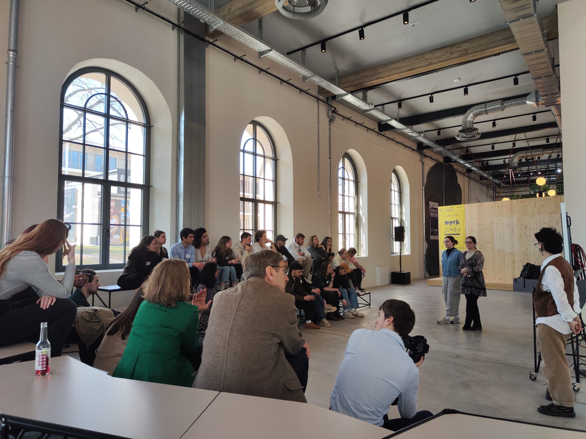 Mehrere Kolleg:innen kamen zu der Präsentation und konnten sich mit den Studiernden austauschen und ihnen Fragen stellen.
