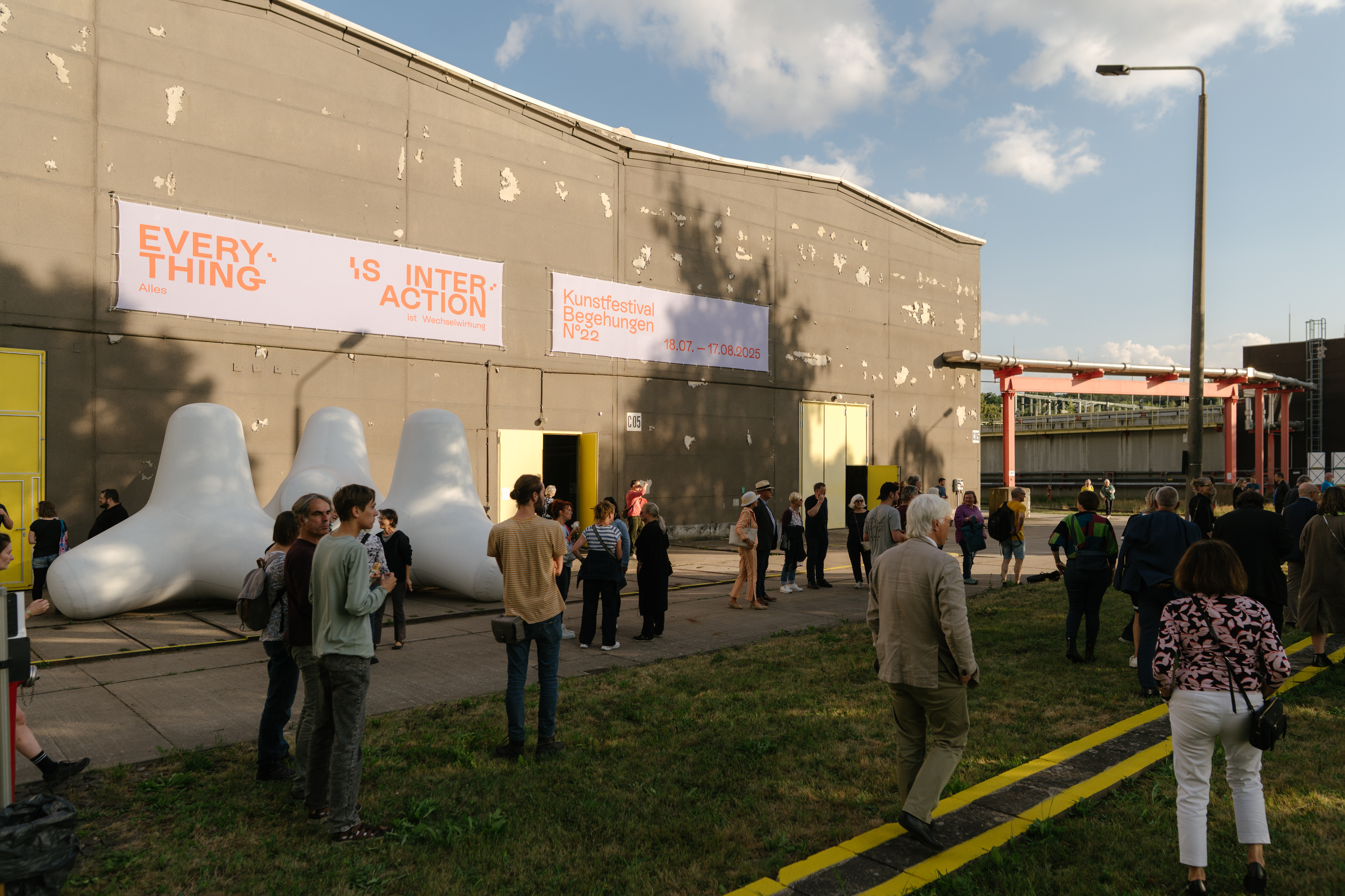 Bis zum 17. August ist das ehemalige Braunkohlekraftwerk in Chemnitz Schauplatz des Kunstfestivals Begehungen. Die Ausstellung bespielt das 2024 stillgelegte Gelände bis mit 32 internationalen künstlerischen Positionen. Auf dem Areal befindet sich auch ein vom französischen Künstler Daniel Buren gestaltete Schornstein (7 Farben für einen Schornstein). Unter dem Titel Everything is Interaction nimmt das Kunstfestival Themen wie Ressourcenverbrauch, Artenverlust und Klimakrise in den Fokus. Gezeigt werden Arbeiten von Künstler:innen wie Lara Almarcegui, Olaf Nicolai, Henrike Naumann, Uriel Orlow, Ursula Biemann, Gregor Schneider, Paulo Tavares, Daniel Otero Torres, Günther und Loredana Selichar oder Hito Steyerl. Sie beschäftigen sich mit sozialen, ökologischen und ökonomischen Folgen der Umweltzerstörung, mit Gerechtigkeits- und Machtfragen sowie damit verbundenen gesellschaftlichen Diskursen. Gut ein Viertel der Arbeiten, wie beispielsweise die Windinstallation von Rikuo Ueda, sind ortsspezifisch im Rahmen von Residenzaufenthalten entstanden.