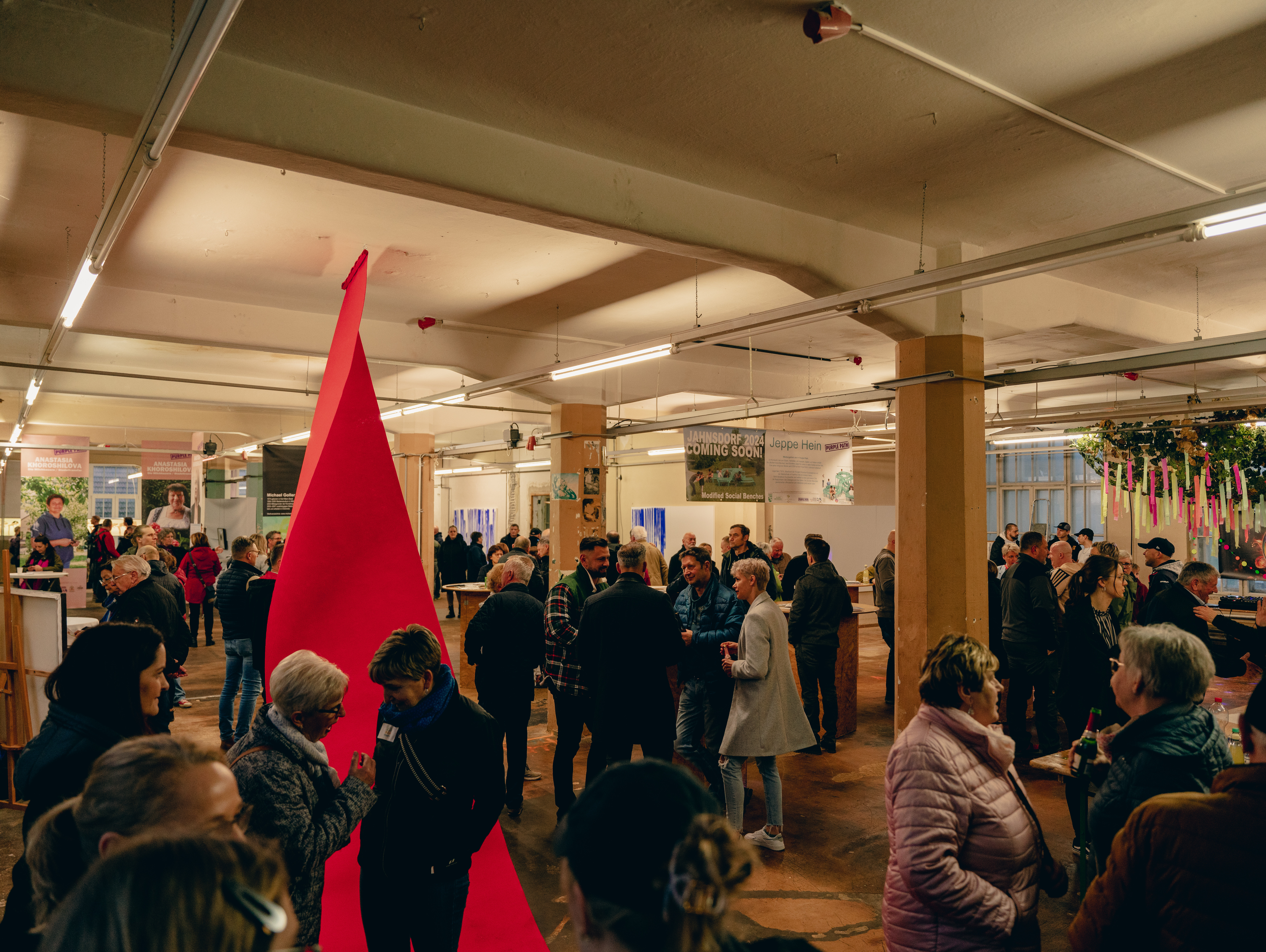 Ein Jahr vor dem Kulturhauptstadtjahr“ stellten die Initiator:innen u.a. die Künstler:innen Anastasia Khoroshilova und Jeppe Hein vor, mit denen die Kommune für den Kunst- und Skulpturenweg PURPLE PATH zusammenarbeitet. Das Kennenlernen geschah auf unkonventionelle Weise, denn die Besucher:innen waren eingeladen, selbst zum Pinsel zu greifen und mitzumachen.