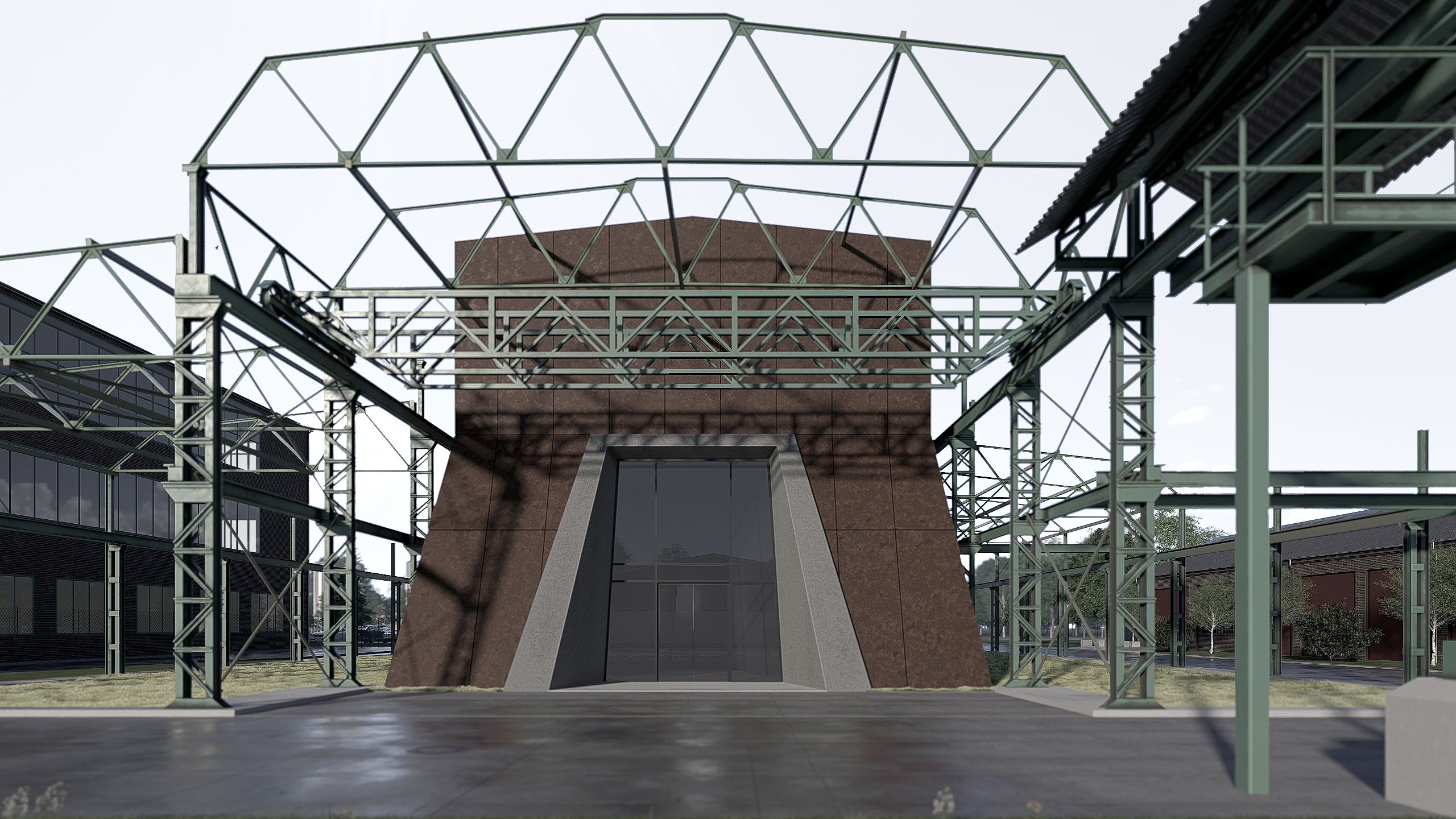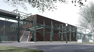Die dafür vom Büro H2 ARCHITEKTUR by hendrik heine aus Lichtenstein im Auftrag der Stadt Oelsnitz/Erzgeb. transformierte dreischiffige Industriehalle formuliert eine vollständig neue Idee der Denkmalpflege. Das Stahlskelett der ehemals 1.600 Quadratmeter großen Halle wurde abgetragen, restauriert und wird samt Kranbahn neu aufgerichtet. Sie bildet den Rahmen für ein mit Cortenstahl verkleidetes Ausstellungsgebäude, für das James Turrell sein Lichtkunstwerk „Ganzfeld - Beyond Horizons 2025“ konzipiert hat.