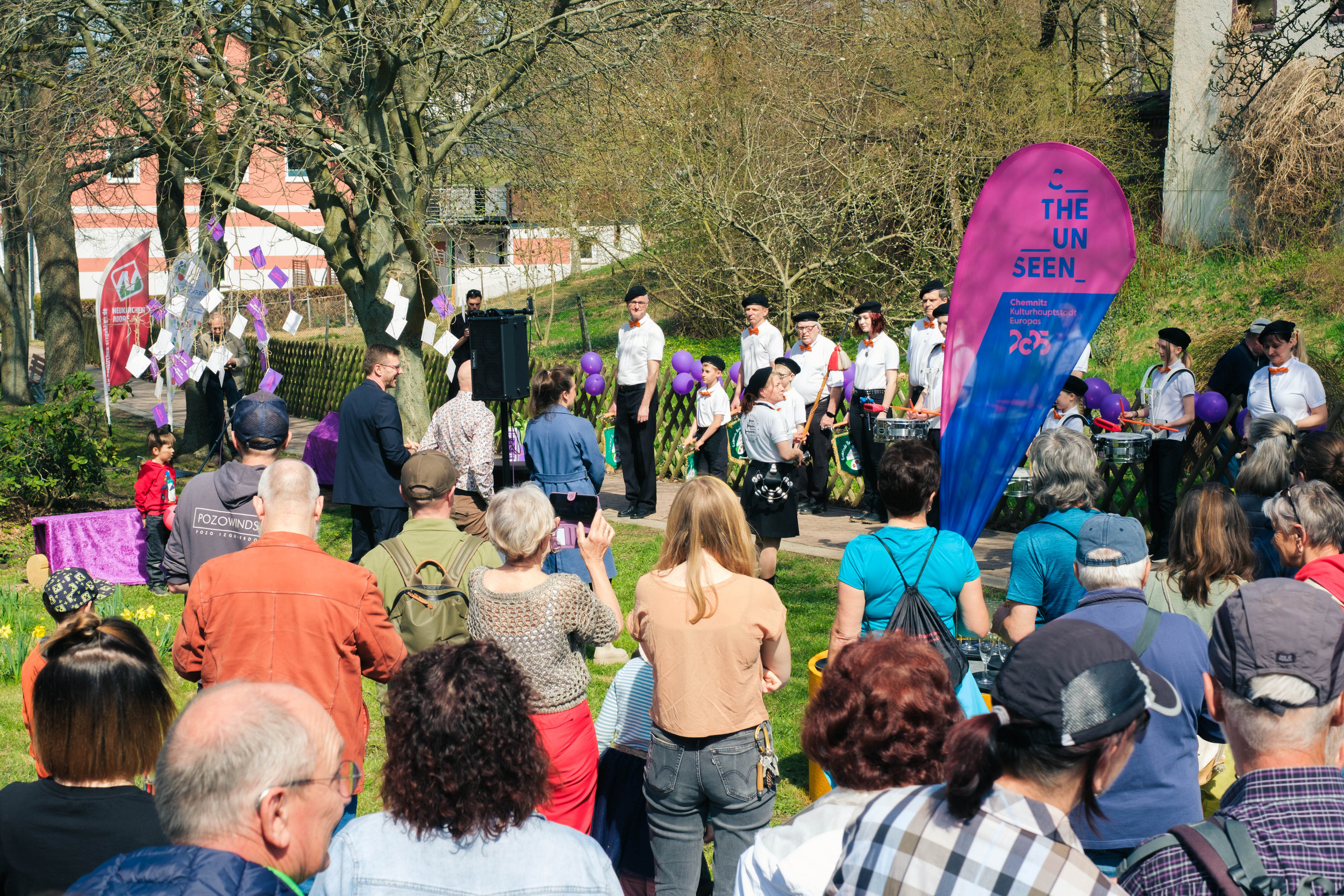 Mit einem Festakt wurde der Kunst- und Skulpturenweg PURPLE PATH am 11. April in Flöha feierlich eröffnet. Es folgte ein dreitägiges Fest mit neuen Skulpturen, Ausstellungen, Kunst-Touren, zahlreichen Veranstaltungen und vielen begeisterten Besucher:innen in der gesamten Kulturhauptstadtregion.