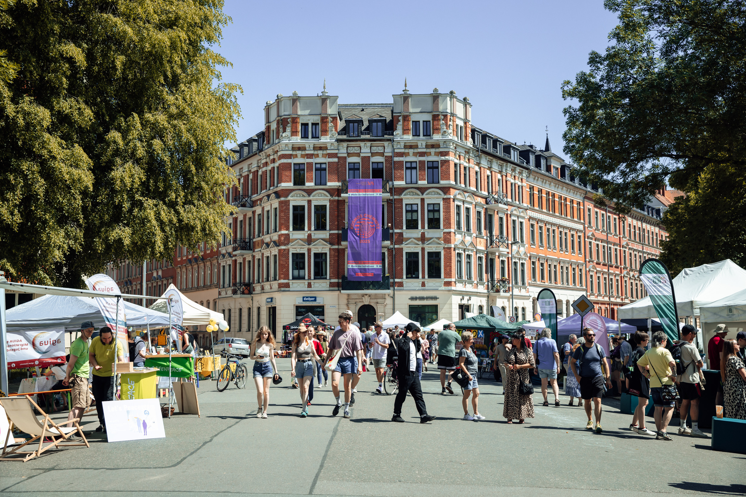 Der KOSMOS Chemnitz ist mehr als ein Musikfestival: Gesellschaftlicher Dialog, Teilhabe und demokratische Beteiligung stehen ebenso im Mittelpunkt. In Mitmachangeboten konnten Besucher:innen sticken, tanzen, siebdrucken, bauen, gestalten, lernen und Neues ausprobieren. Ergänzt wurde das Programm um Kunstinstallationen, sportliche Wettbewerbe sowie Gesprächsformate zu Themen wie Zukunftsperspektiven, ehrenamtlichen Engagement, Soziale Medien oder psychische Gesundheit.