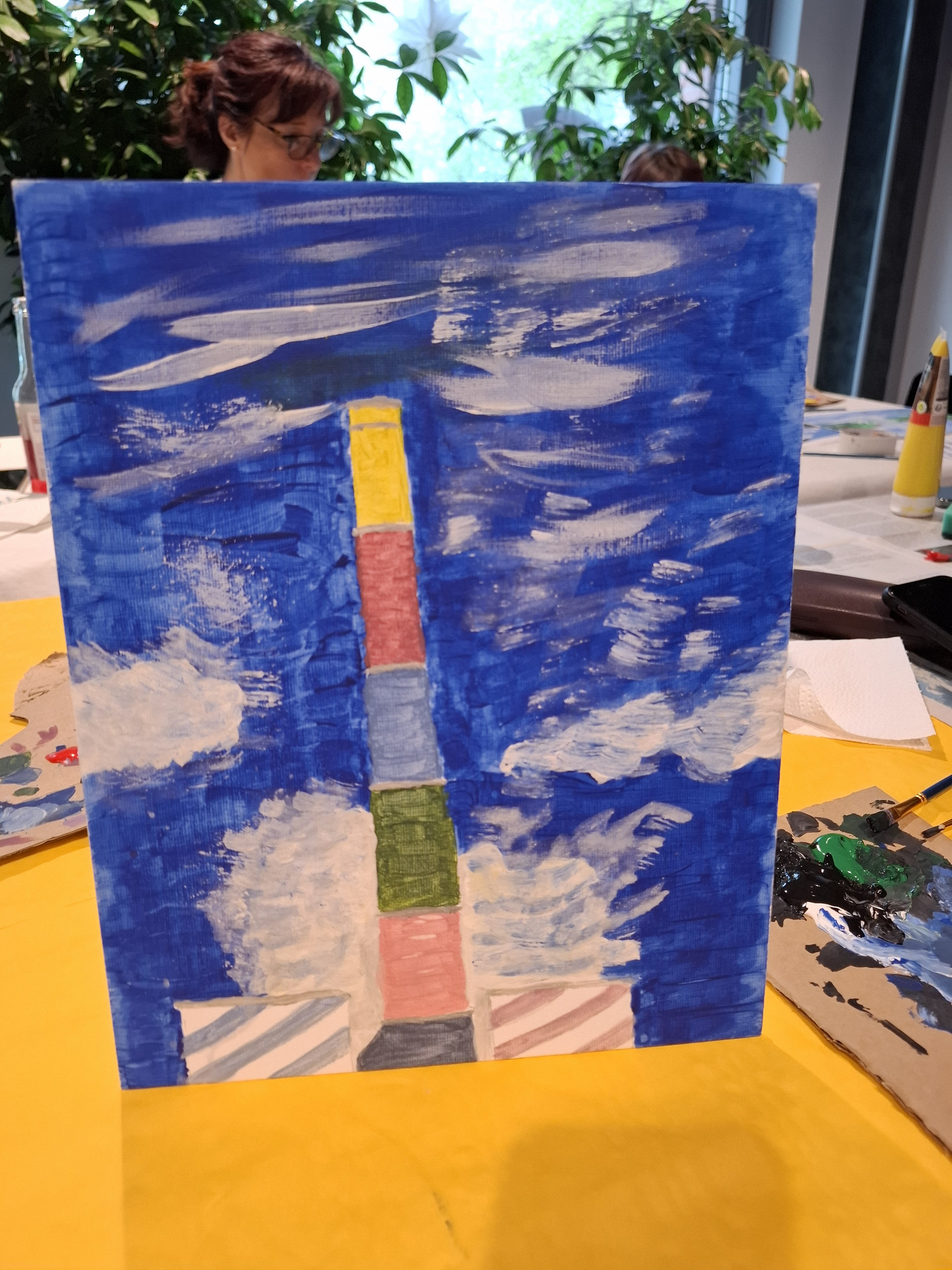 Ich finde es generell eine gute Idee, die Möglichkeiten zu nutzen, die sich in unserer Volunteer-Gemeinschaft bieten. Als das Angebot kam, zusammen mit anderen Ehrenamtlichen unter fachkundiger Anleitung mit Acryl zu malen, habe ich mich sofort angemeldet. Das wollte ich schon immer ausprobieren. Am 27. Mai war es dann so weit. Ich machte mich voller Vorfreude auf den Weg in die Schmidtbank, wo die Veranstaltung stattfand. Noch größer war meine Freude, als ich sah, wer uns Anleitung und Hilfe geben wollte: Norma, eine engagierte Freiwillige, die ich vom Free Walking kenne, und Martin, auch ein Volunteer, den ich sehr schätze. Beide hatten den Raum schon vorbereitet, auf den Tischen standen die Pinsel bereit, das Wasser war in den Bechern und die Farben? Es gab genau 5 Flaschen in den Grundfarben Rot, Weiß, Schwarz, Blau und Gelb. Das sollte für uns alle reichen? Und warum nur fünf? Es gibt doch auch noch Grün, Braun, von den Zwischentönen ganz zu schweigen. Wie sollte das denn funktionieren? Ich sah mich schon als Vertreterin einer eigenen Kunstrichtung: knallige Farben mit wenig Bezug zur Realität. Aber gab es das nicht schon mal? Meine Gedanken wurden von Normas einführenden Worten unterbrochen, danach stellten sich die Teilnehmerinnen vor. Ja, ihr lest richtig, Teilnehmerinnen. Außer Martin war kein weiterer Mann im Raum. Wahrscheinlich waren die bei den Garagen. ;- Und dann durften wir loslegen mit Motiven zum Thema Chemnitz. Einige hatten sich vorbereitet und etwas mitgebracht, für die anderen lagen genügend wunderbare Bilder aus, um sie im eigenen Stil aufs Papier zu bringen. Ich lernte Farben so zu mischen, dass sie auch auf dem Bild rüberkamen, wie ich es wollte. Im Nachhinein hätte ich mich nur mal an meinen Kunstlehrer zu erinnern brauchen, aber das ist dann doch schon ein Weilchen her. Deshalb Dank an Norma und Martin für ihre sachdienlichen Hinweise, die es ermöglichten, dass ich ein tolles Bild von der Bierbrücke in Chemnitz malen konnte. Auch die Bilder der anderen Teilnehmerinnen haben mich sehr beeindruckt, es sind kleine Kunstwerke entstanden. Und das Schönste: Wir werden sie ausstellen dürfen!