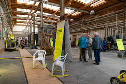 Trichter, Karteikarten, im Druck versteckte Botschaften, Schaukelstühle und Tresen aus ausrangierten Garagentoren. Im Jahr 2024 entwarfen Studierende der Burg Giebichenstein Kunsthochschule Halle Objekte für den #3000Garagen-Parcours, die die lokalen Geschichten der Chemnitzer Garagenhöfe vermittelten. Zwei ausgewählte Entwürfe wurden an zehn Stationen des Parcours realisiert. Tresen und Schaukelstühle, die im Rahmen des Forschungsprojektes entstanden sind, dienten als funktionale Teile der Ausstellungsarchitektur, Trichter und Karteikarten wurden als Exponate gezeigt und stellten eine Verbindung zum Garagenparcours im öffentlichen Raum her.