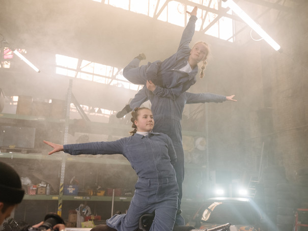 Zwei Welten, die selten aufeinandertreffen, brachte die Künstlerin Cosima Terrasse zusammen: Voltigierkunst und Autotuning. Auf einem ehemaligen Industrieareal, heute Garagenstandort für Tuner:innen, begegneten sich Körpertechnik und Maschinenästhetik – verbunden durch ein mechanisches Voltigierpferd, das sich im Besitz eines Garagennutzers befand.