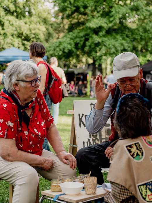 Großzügige Nachbarschaft lud ein zum Blick über den eigenen Tellerrand: Was machen die anderen eigentlich so? Über das Entdecken und Erleben ungeahnter Gemeinsamkeiten in Projekten sollten Werte wie Respekt, Toleranz und Solidarität im Zusammenleben erfahrbar werden. Demokratieförderung mittels Kunst und Kultur, Beteiligung und langfristigem Engagement – wie entsteht gelebte Nachbarschaft?