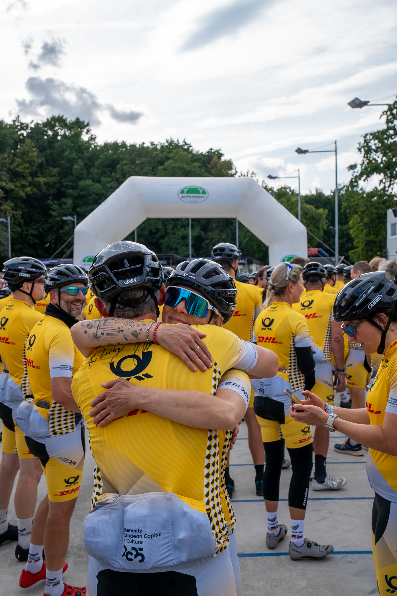 Die Austragung wird jeweils zu einem gesellschaftlichen Event: Jubelnde Menschenmengen am Straßenrand und bei der Ankunft der Pedalritter:innen sorgen für große Gänsehautmomente, die denen bei der Tour de France in nichts nachstehen. Über 220 Fahrer:innen aus ganz Europa kamen beim European Peace Ride 2025 nach drei Etappen von Passau über Plzeň und Ústí nad Labem am 13. September in Chemnitz an. Beim Sattelfest im Jutta-Müller-Eissportzentrum wurde die Ankunft gemeinsam gefeiert und ein starkes Zeichen für europäische Verbundenheit gesetzt. Als besonderer Gast fuhr Jan Ullrich, ehemaliger Rennradfahrer, die letzte Etappe gemeinsam mit den Teilnehmenden ab.